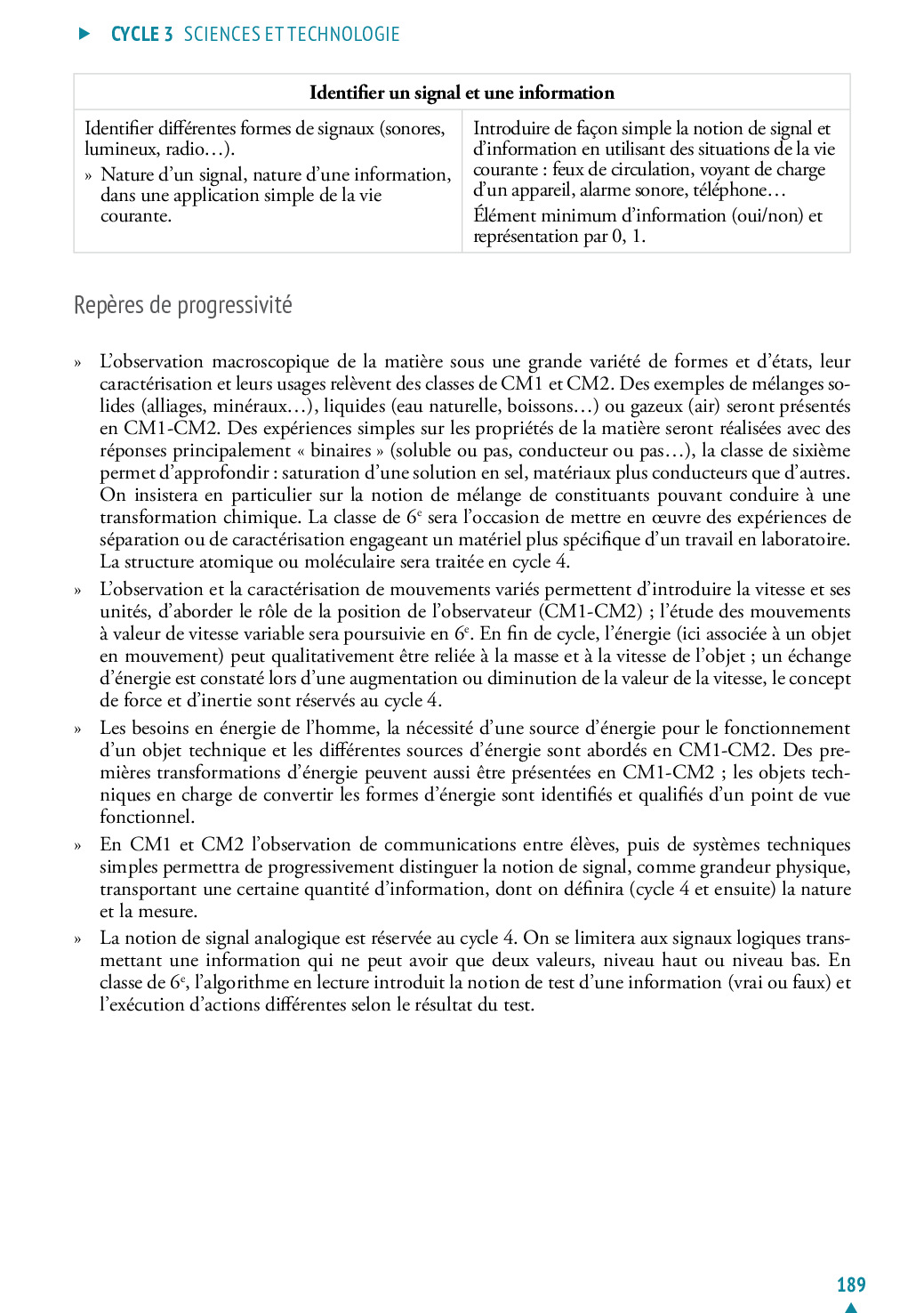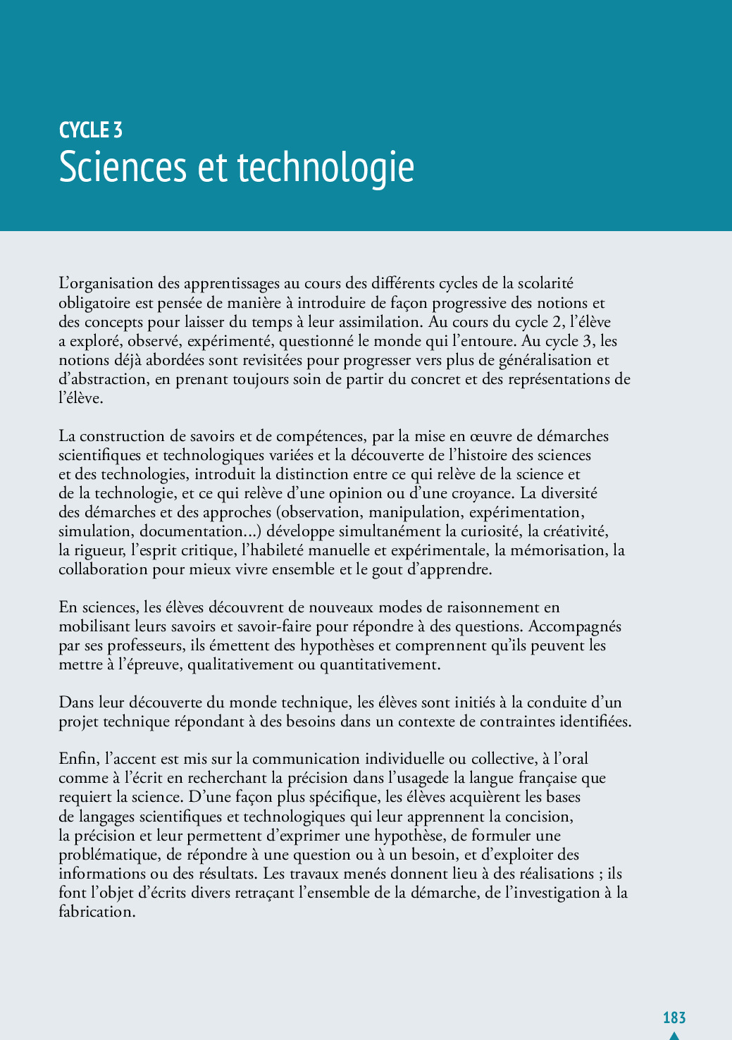 Le programme pédagogique - Sciences et Technologie Cycle 3