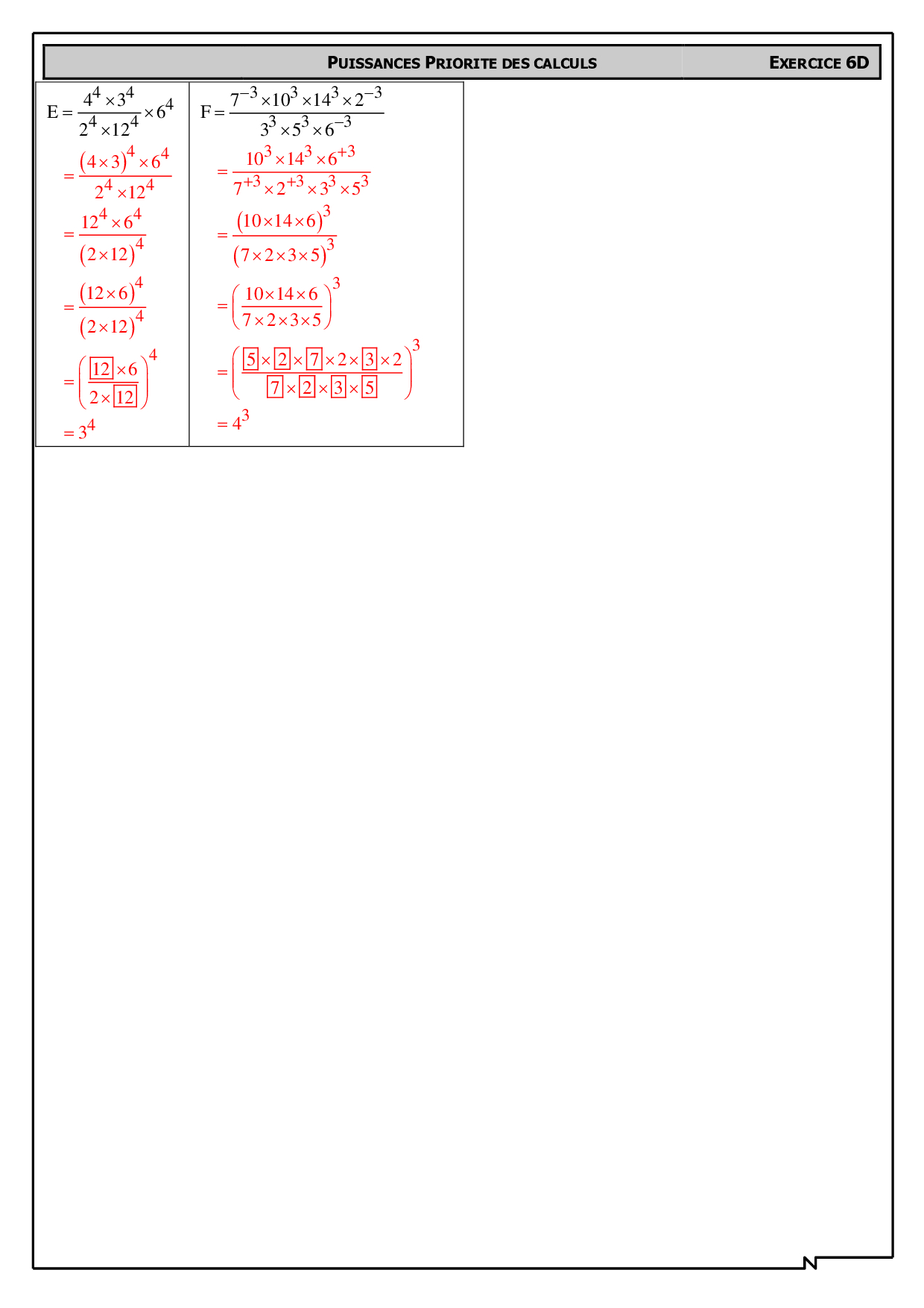 Puissances - Priorité des calculs - Corrigés d'exercices