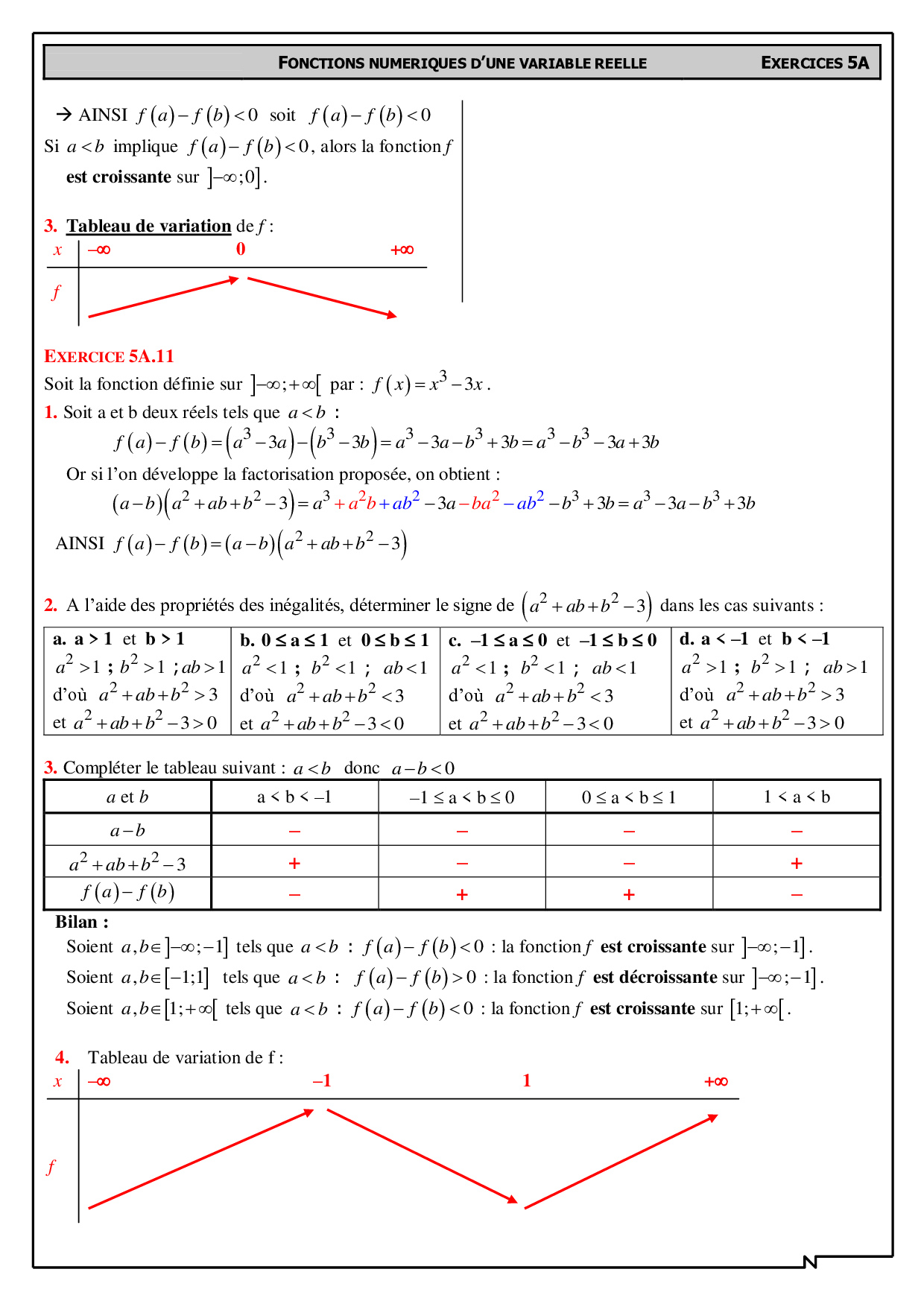Étude de variation - Méthode par étude du signe de f(a)-f(b) - Corrigés d'exercices