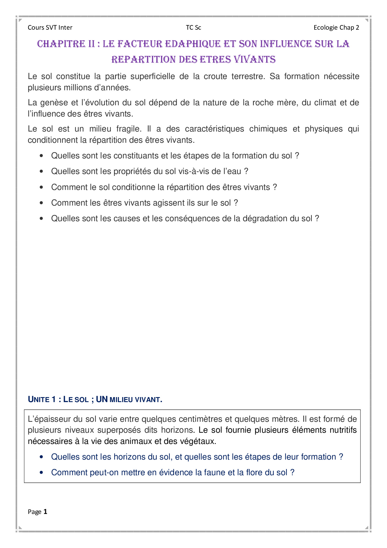 Les facteurs édaphiques et leurs relations avec les êtres vivants - Cours 4