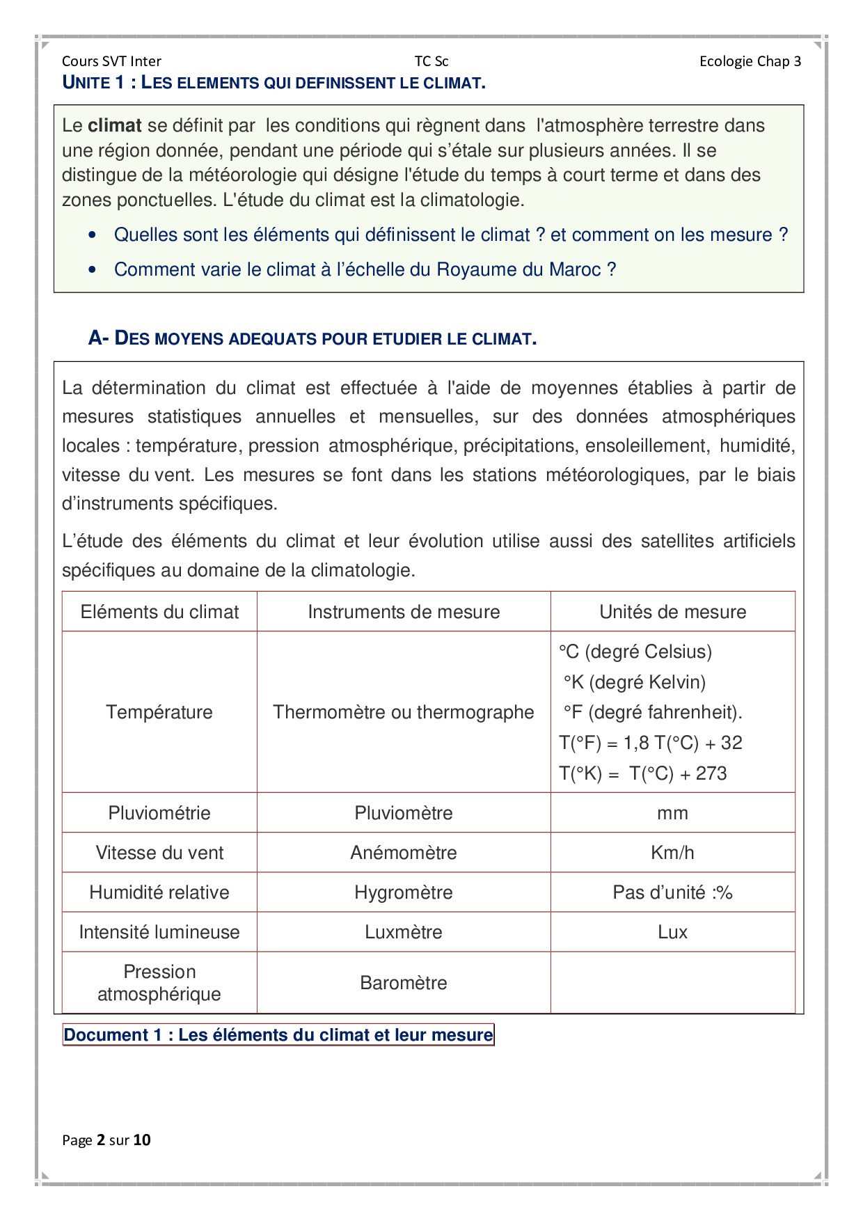 Les facteurs climatiques et leurs relations avec les êtres vivants - Cours 3