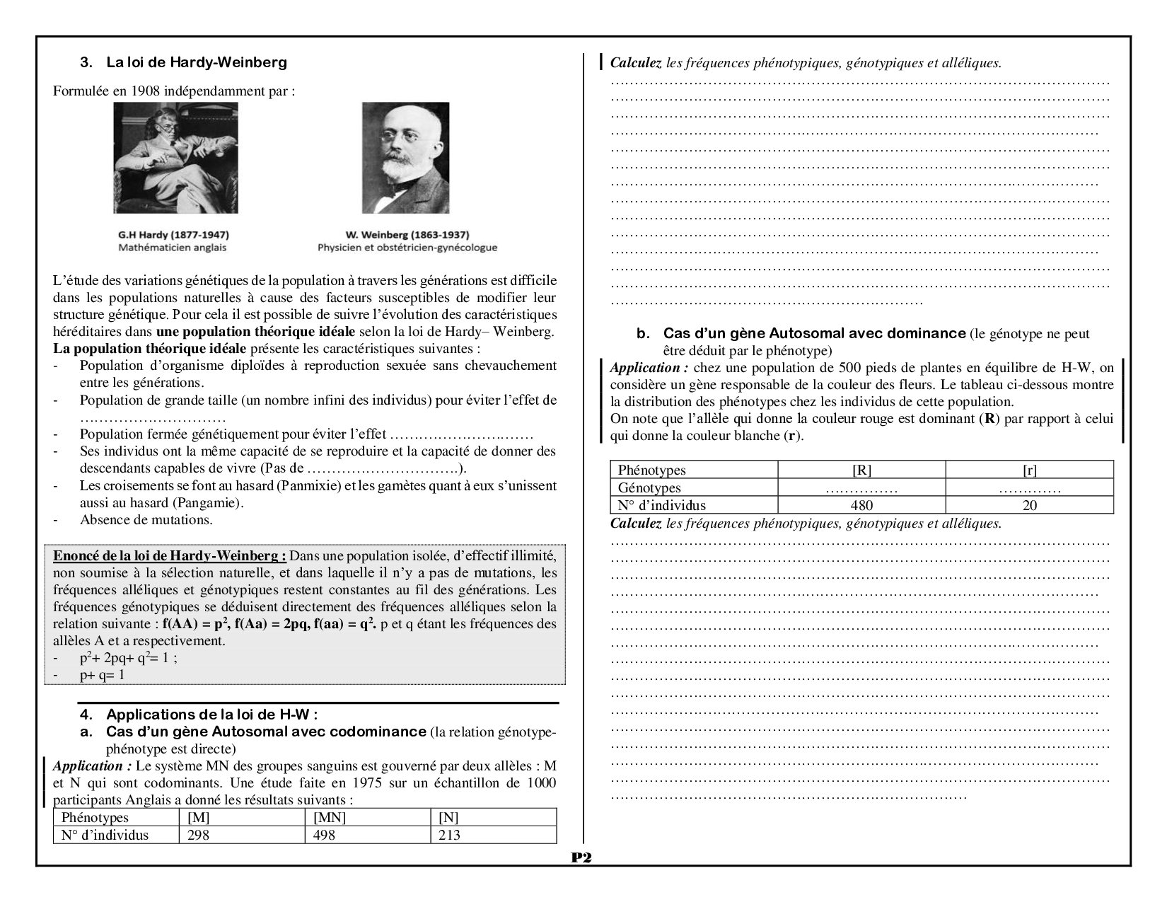 Génétique des populations - Exercices
