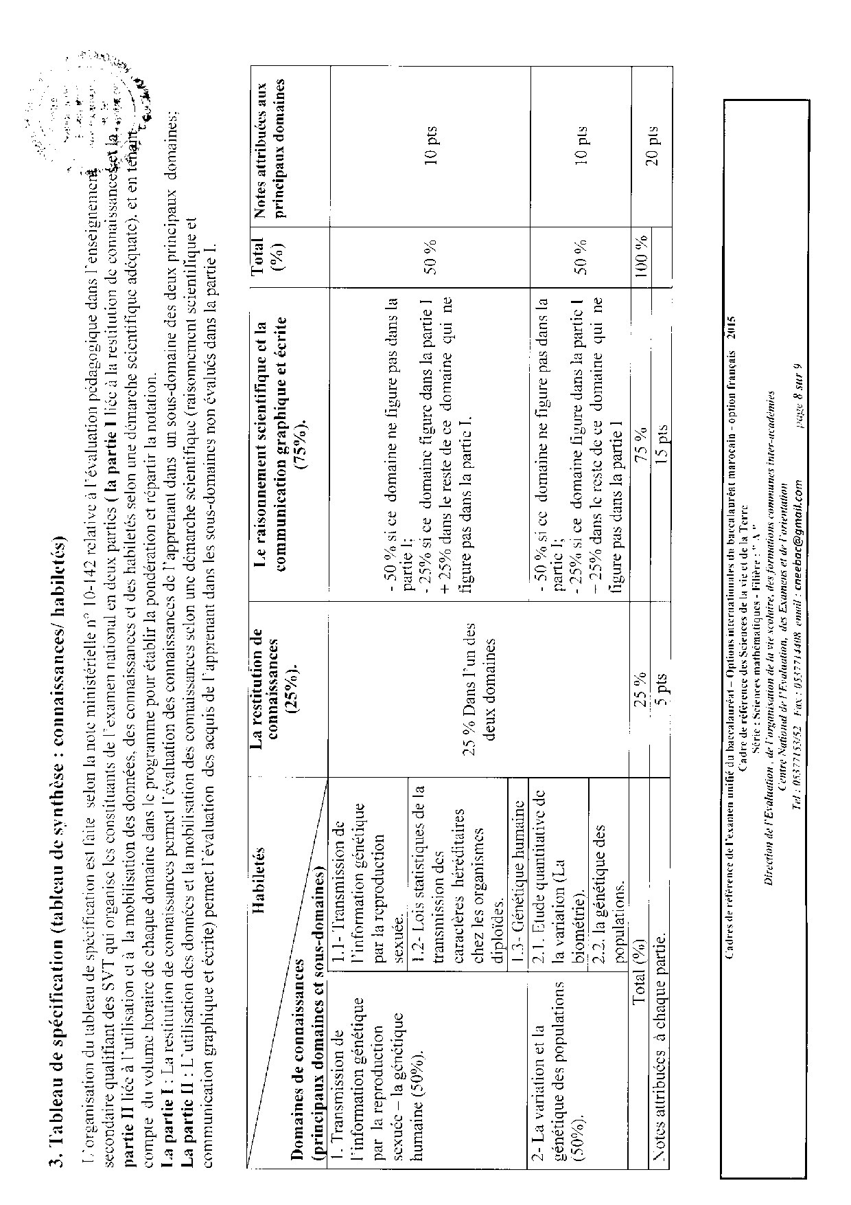 Cadre de référence de l'examen national - SVT Sciences Mathématiques A