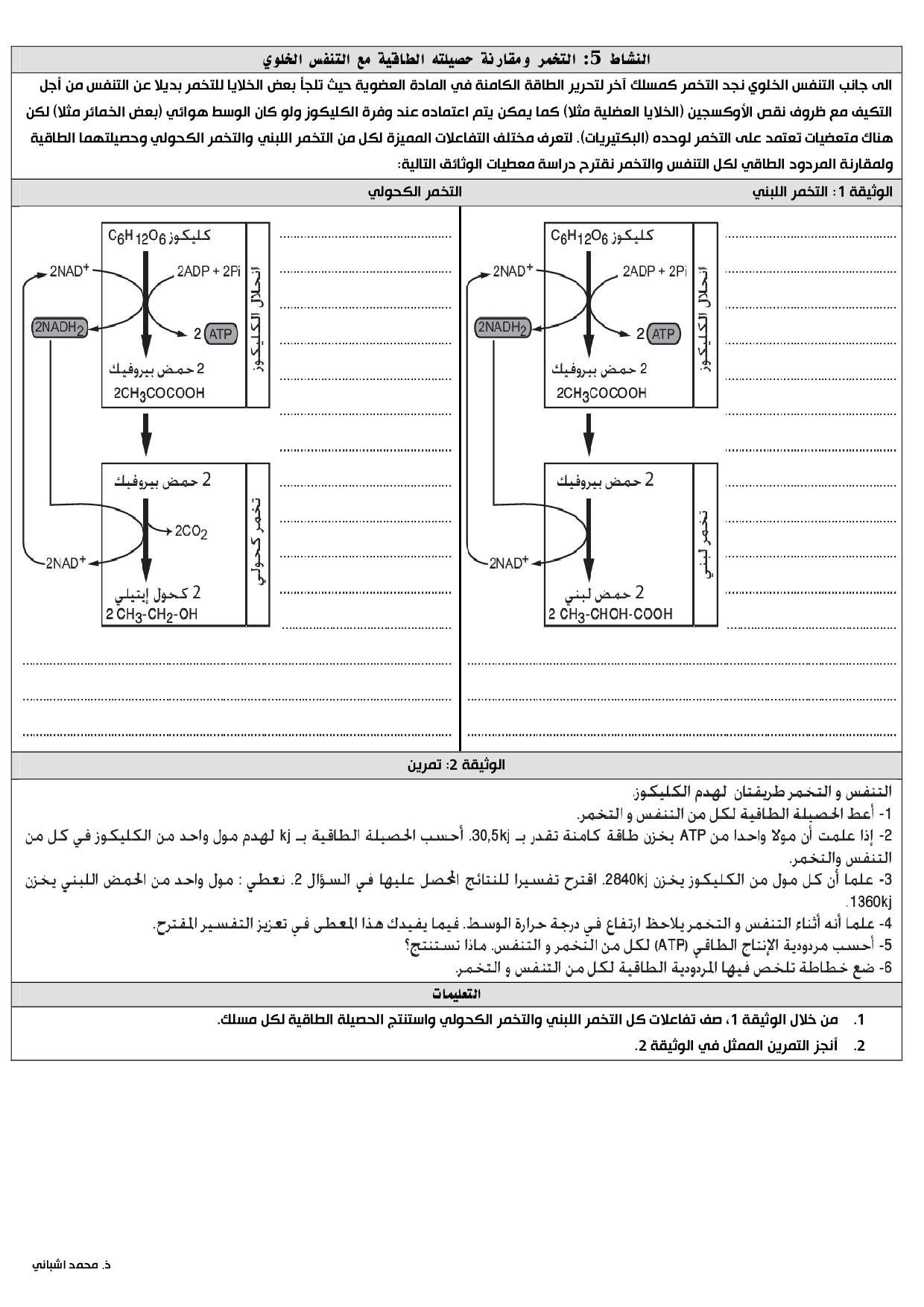 التفاعلات المسؤولة عن تحرير الطاقة الكامنة في المادة العضوية على مستوى الخلية - أنشطة