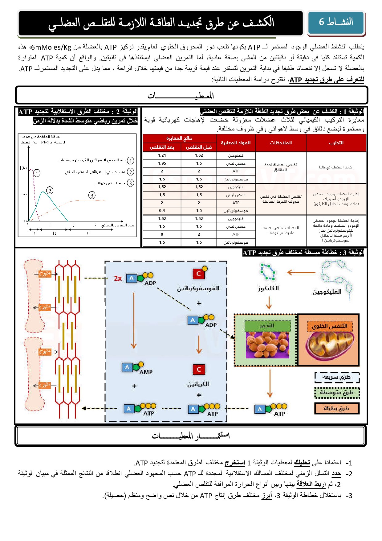 الكشف عن طرق تجديد الطاقة اللازمة للتقلص العضلي - أنشطة