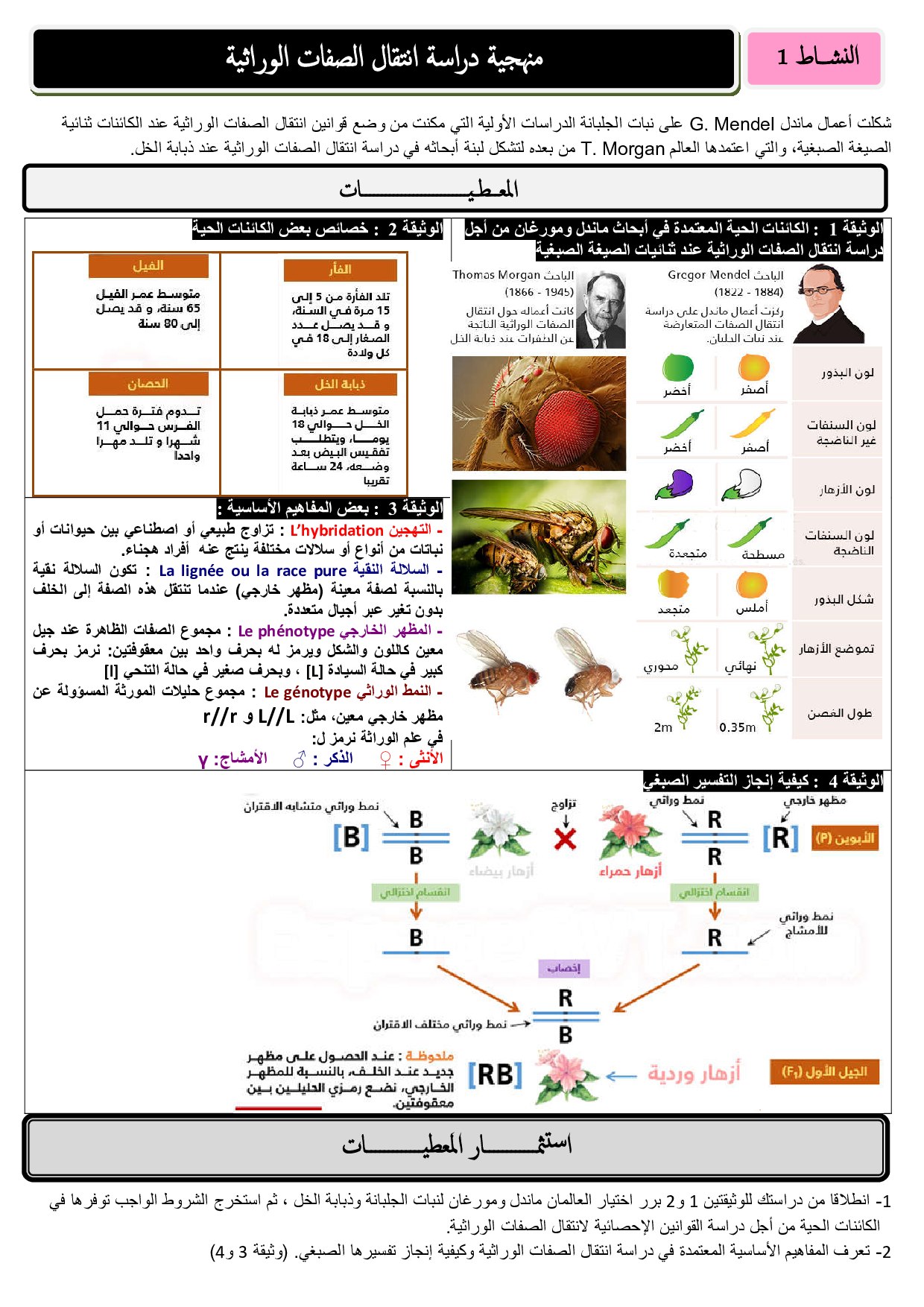 منهجية دراسة انتقال الصفات الوراثية - أنشطة