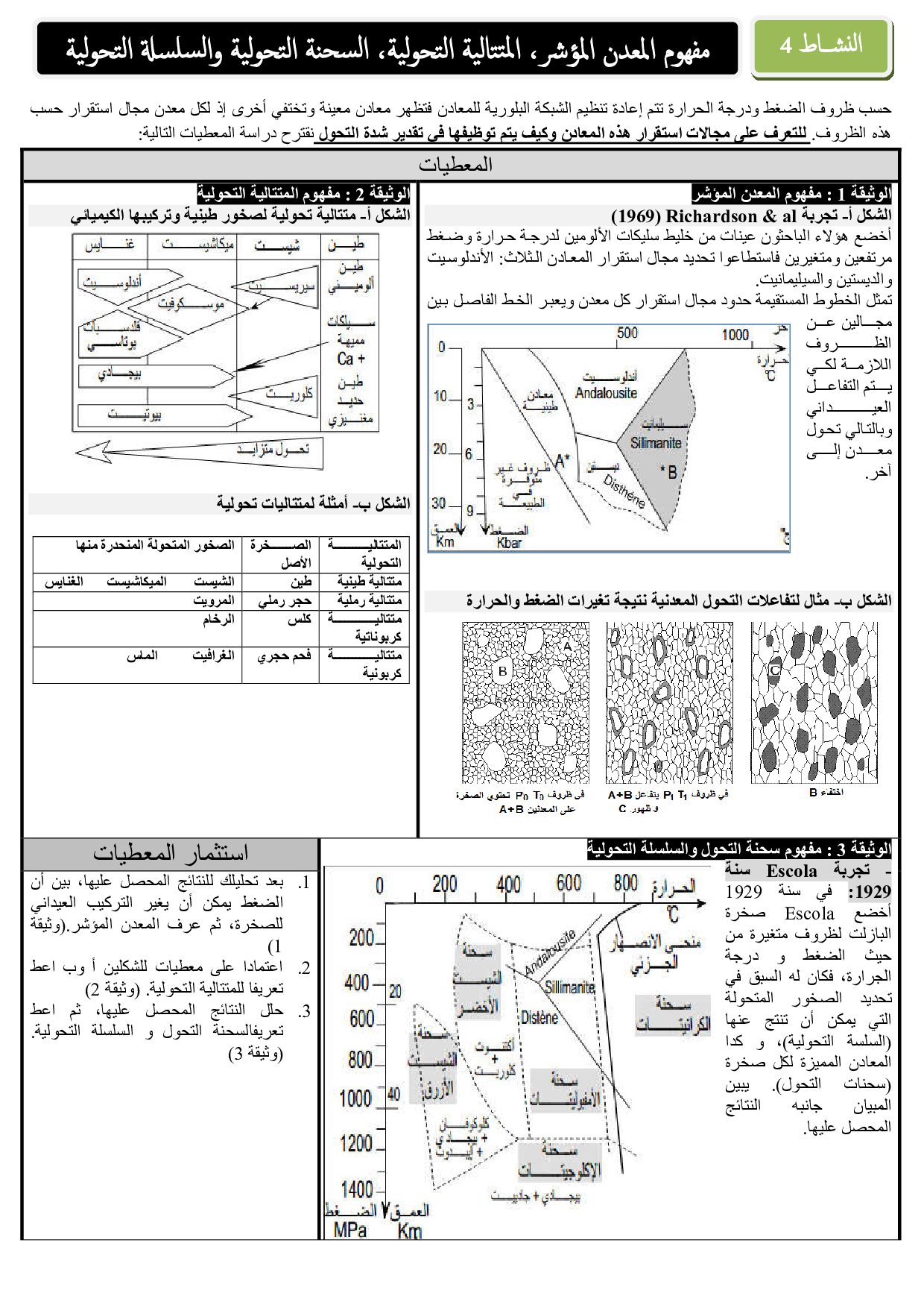 مفهوم المعدن المؤشر، المتتالية التحولية، السحنة التحولية والسلسلة التحولية - أنشطة
