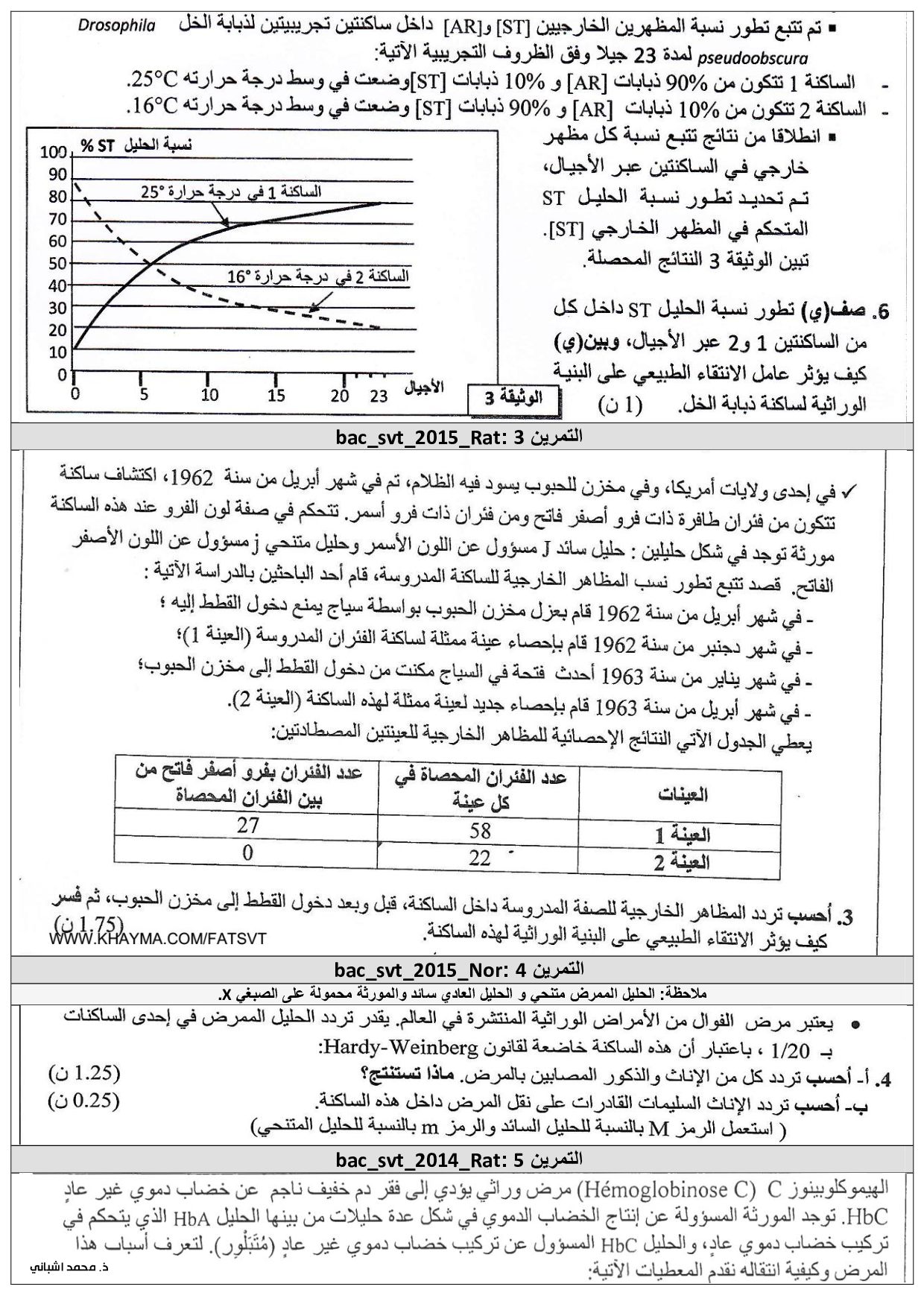 التغير وعلم وراثة الساكنة - سلسلة التمارين 1