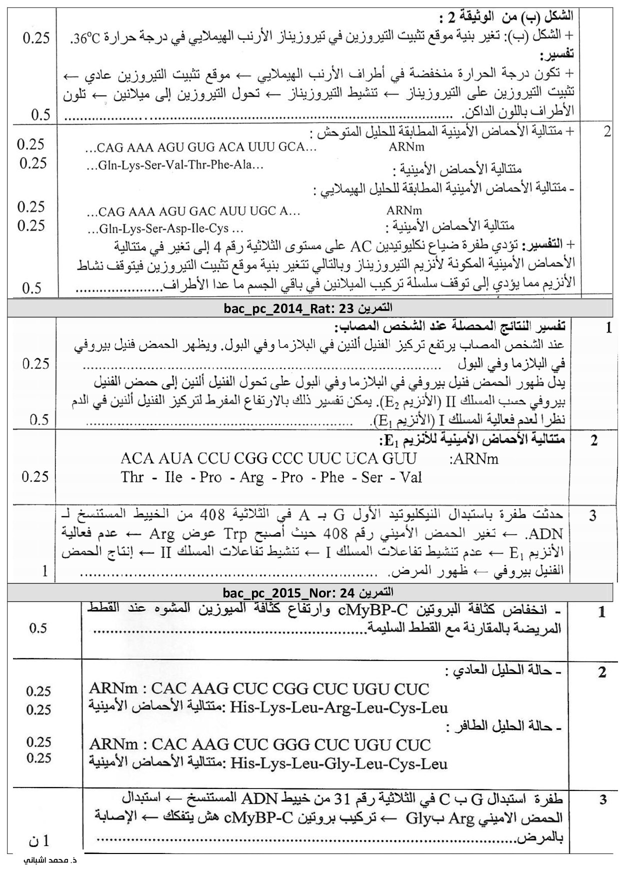 طبيعة الخبر الوراثي والية تعبيره - الهندسة الوراثية - تصحيح سلسلة التمارين 2