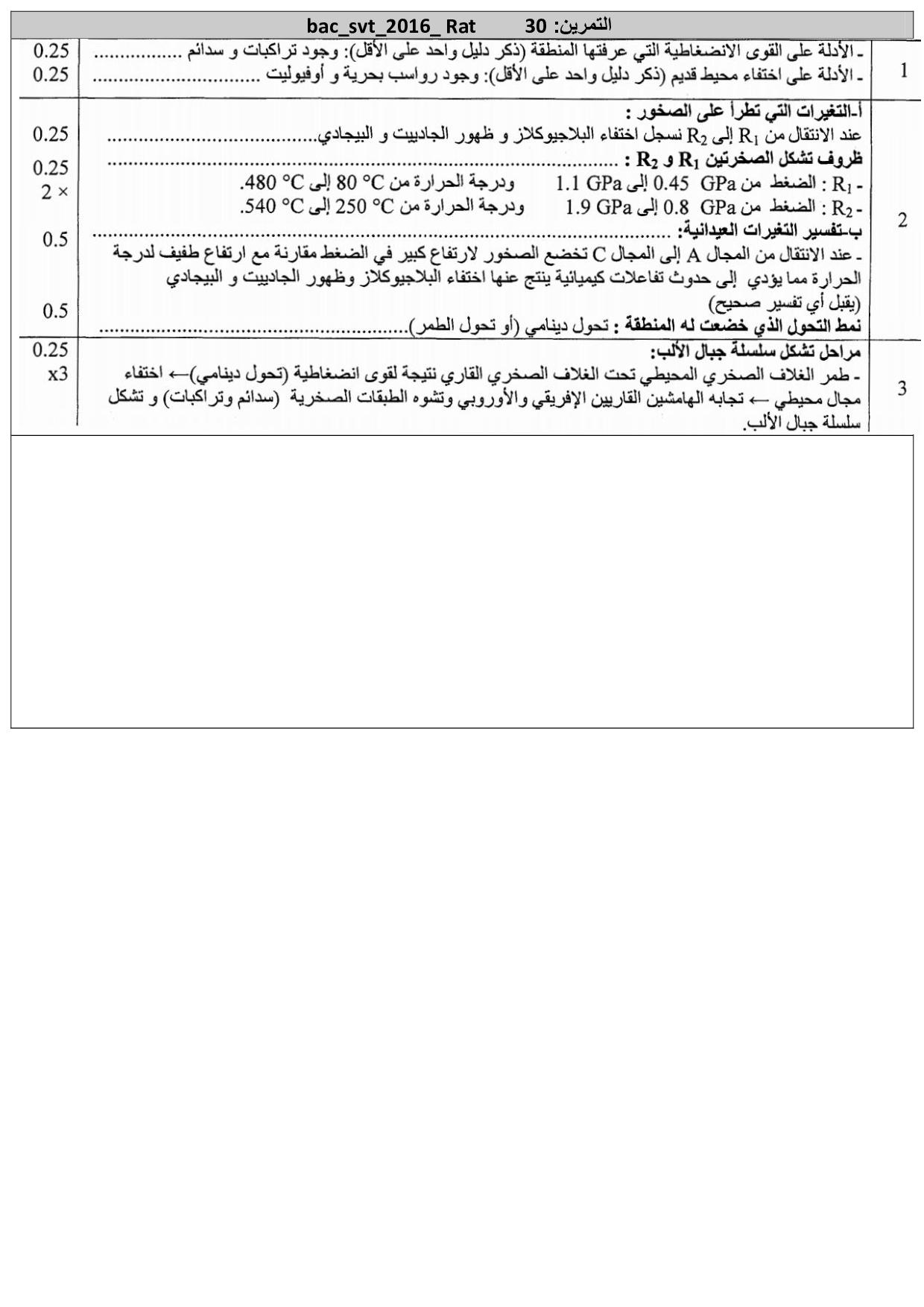 الظواهر الجيولوجية المصاحبة لنشوء السلاسل الجبلية وعلاقتها بتكتونية الصفائح - تصحيح سلسلة التمارين 2