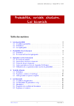 Probabilités (Variable aléatoire - Loi binomiale) - Cours