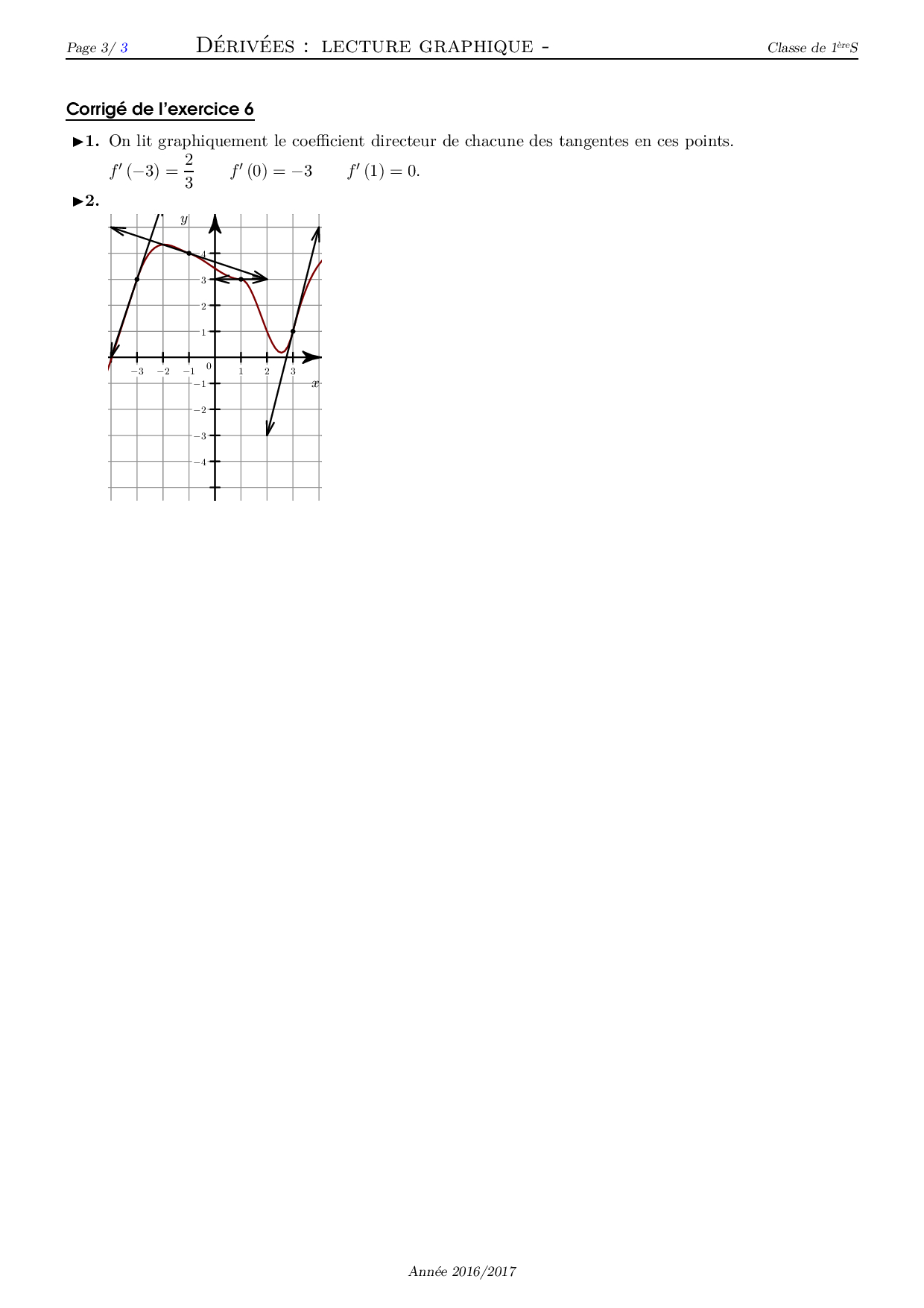 Dérivée d'une fonction (Lecture graphique) - Corrigé série d'exercices 1