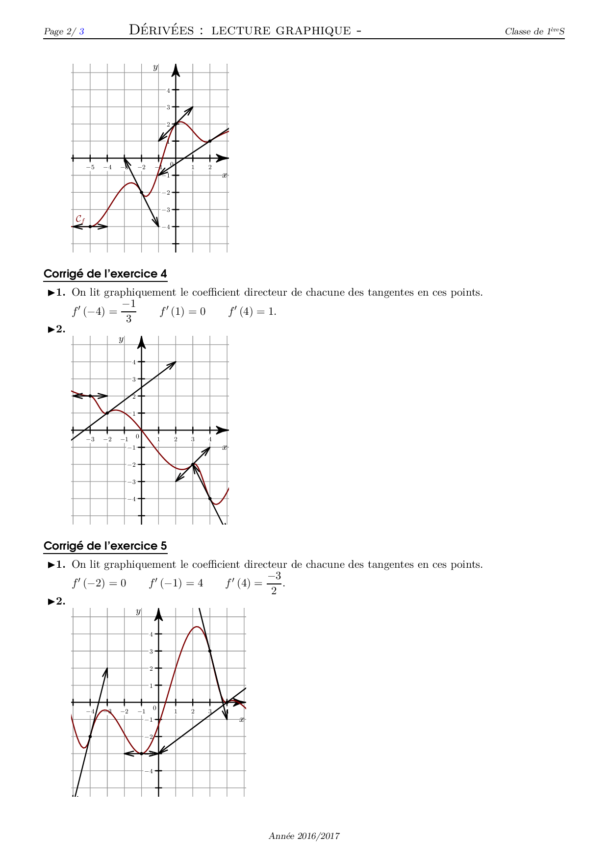 Dérivée d'une fonction (Lecture graphique) - Corrigé série d'exercices 3