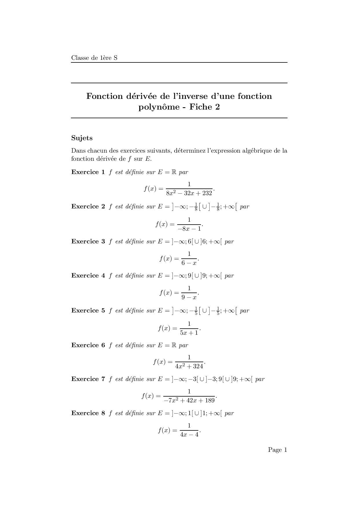 Calcul de la dérivée de fractions polynomiales - Série d'exercices 2
