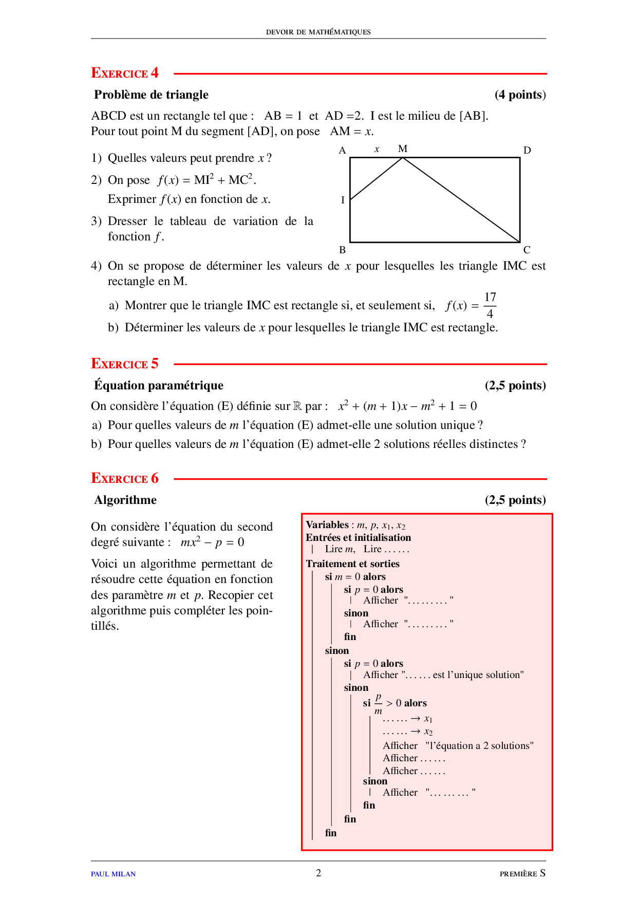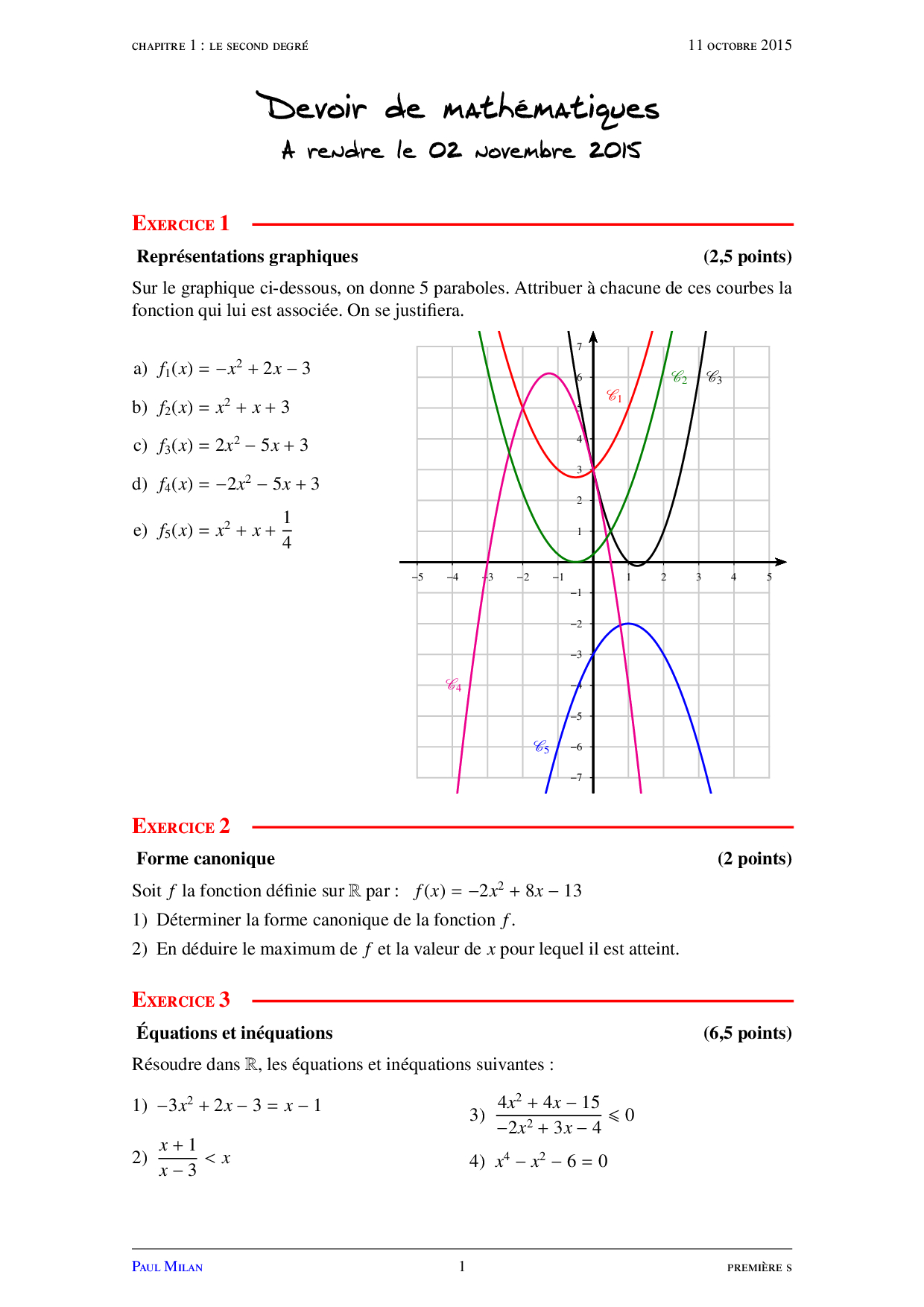 Devoir 1 (Le second degré)