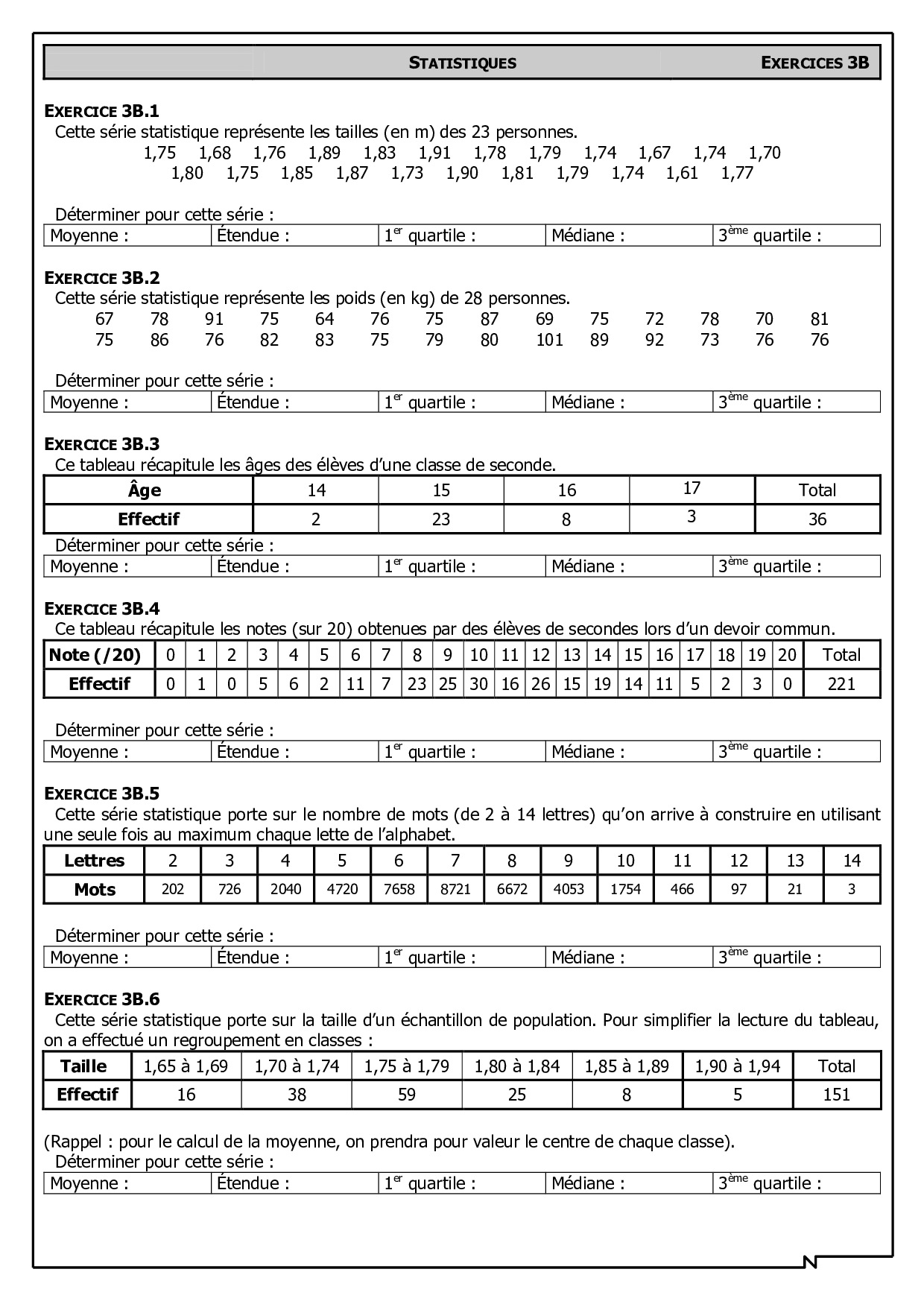 Moyenne - Médiane - Quartiles - Etendue - Exercices
