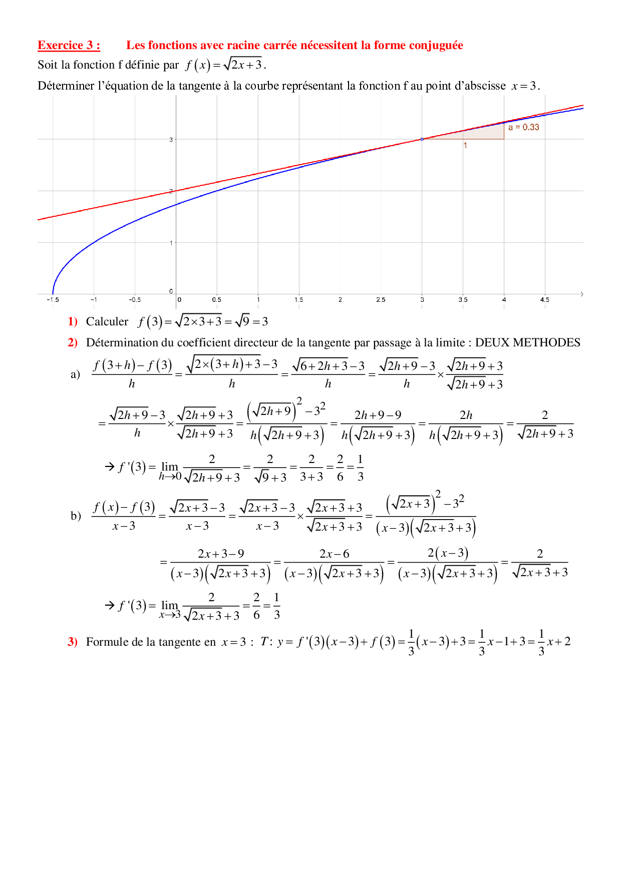 Equations de tangentes - Corrigés d'exercices 1
