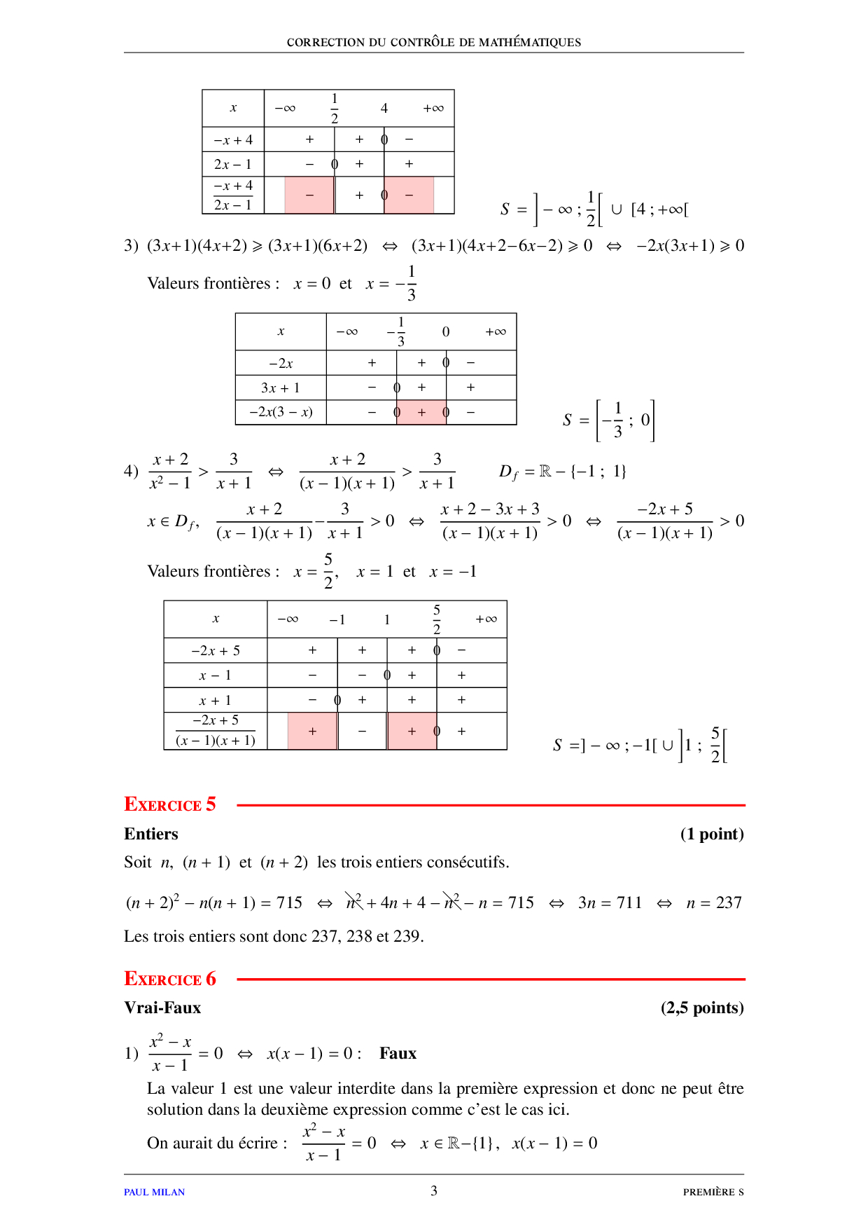 Rappels de seconde - Corrigé du devoir