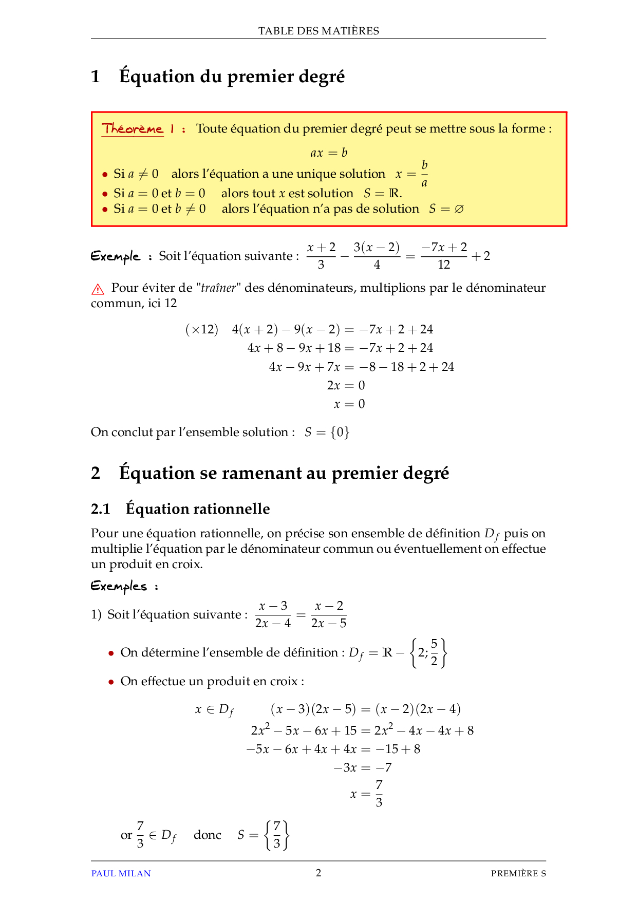 Equations et inéquations du premier degré - Cours
