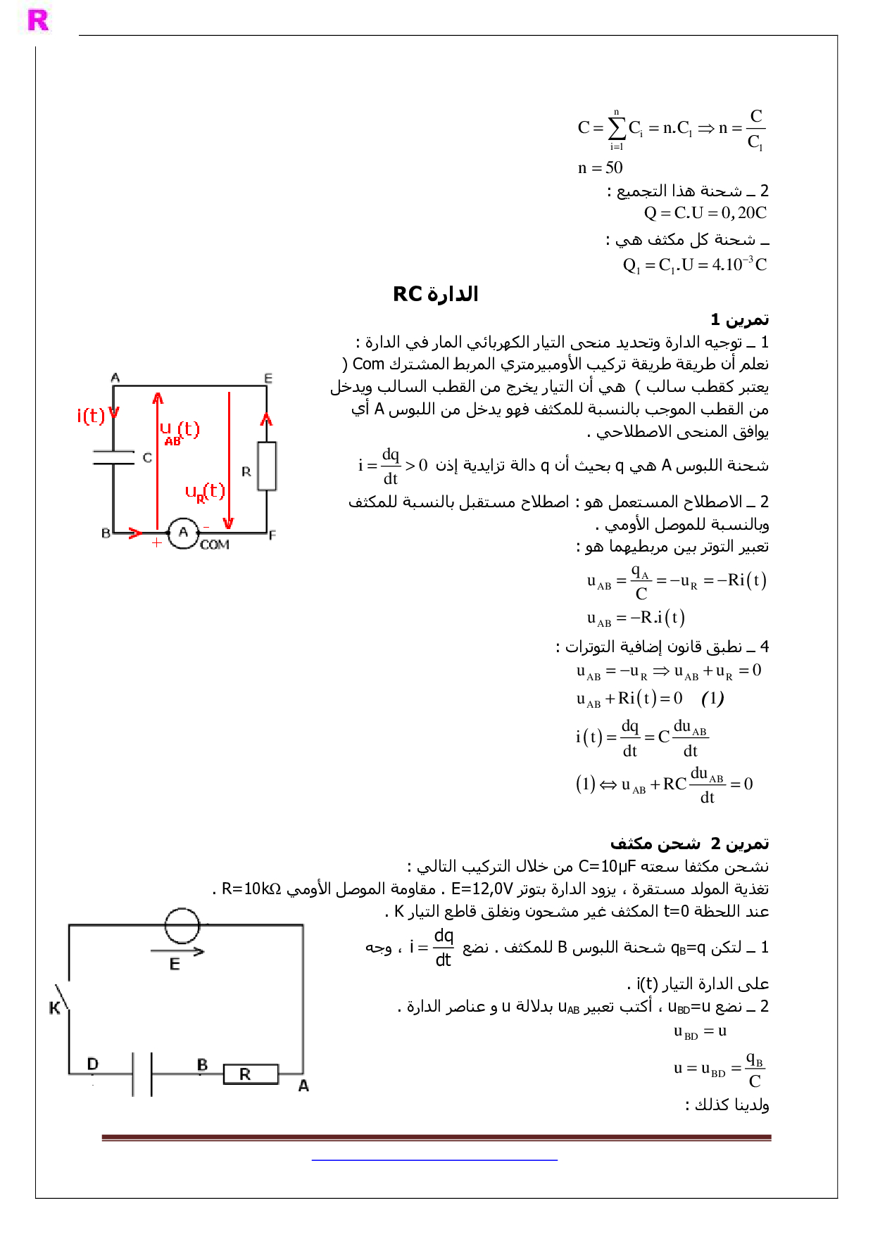 ثنائي القطب RC - تصحيح سلسلة التمارين 1