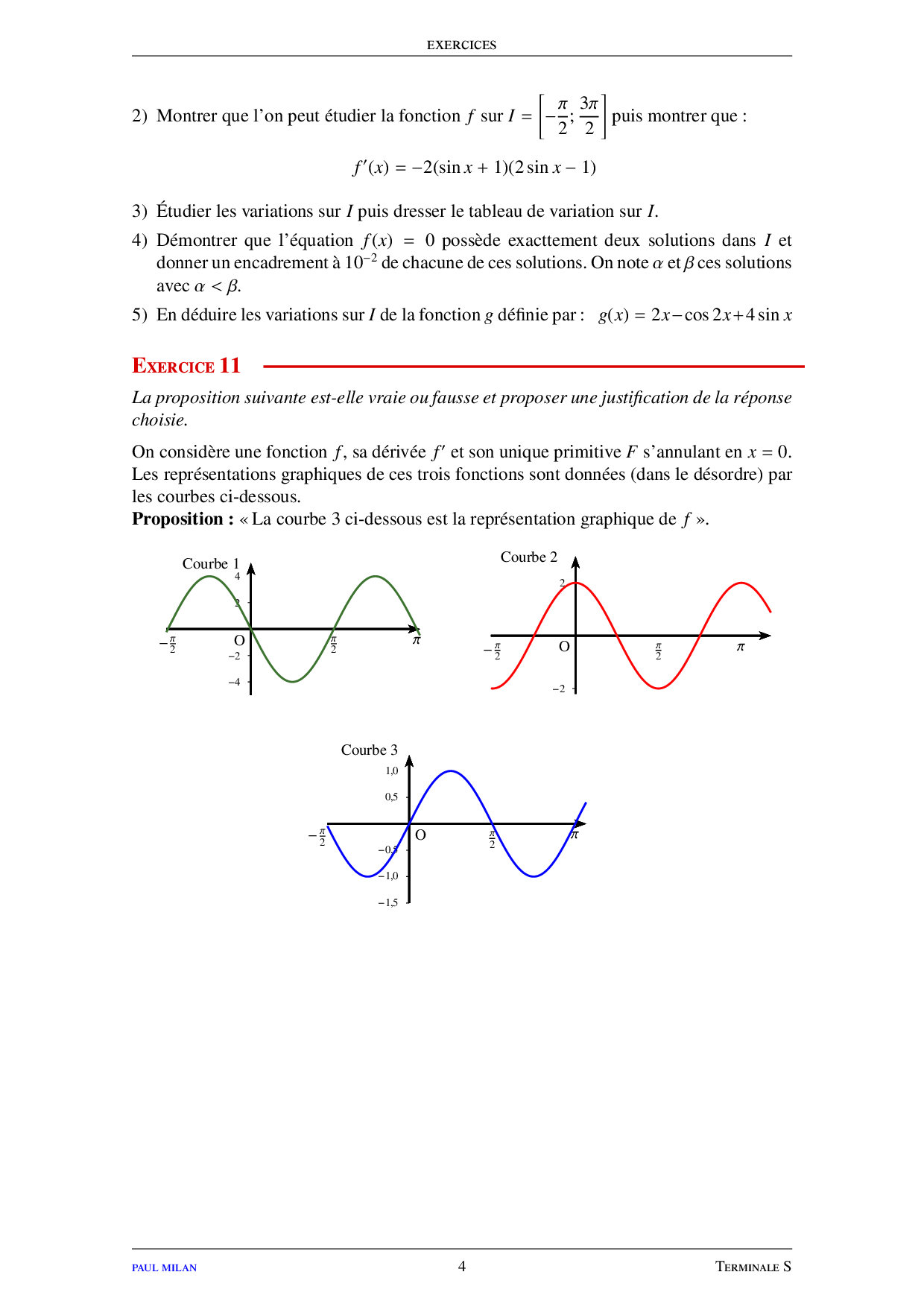 Les fonctions sinus et cosinus - Exercices non corrigés