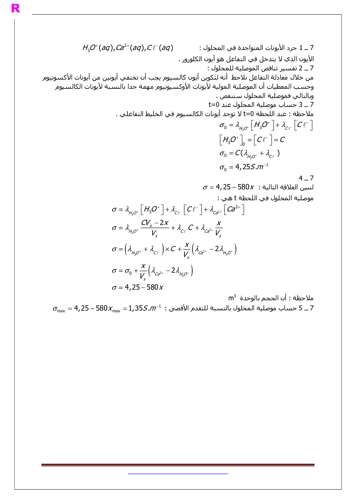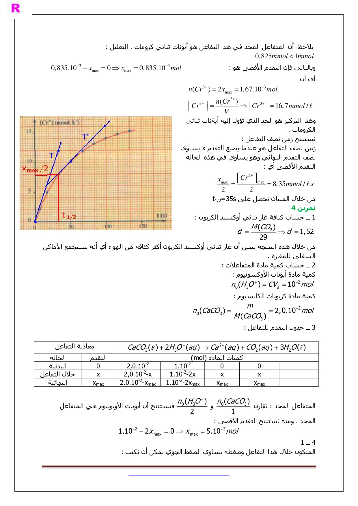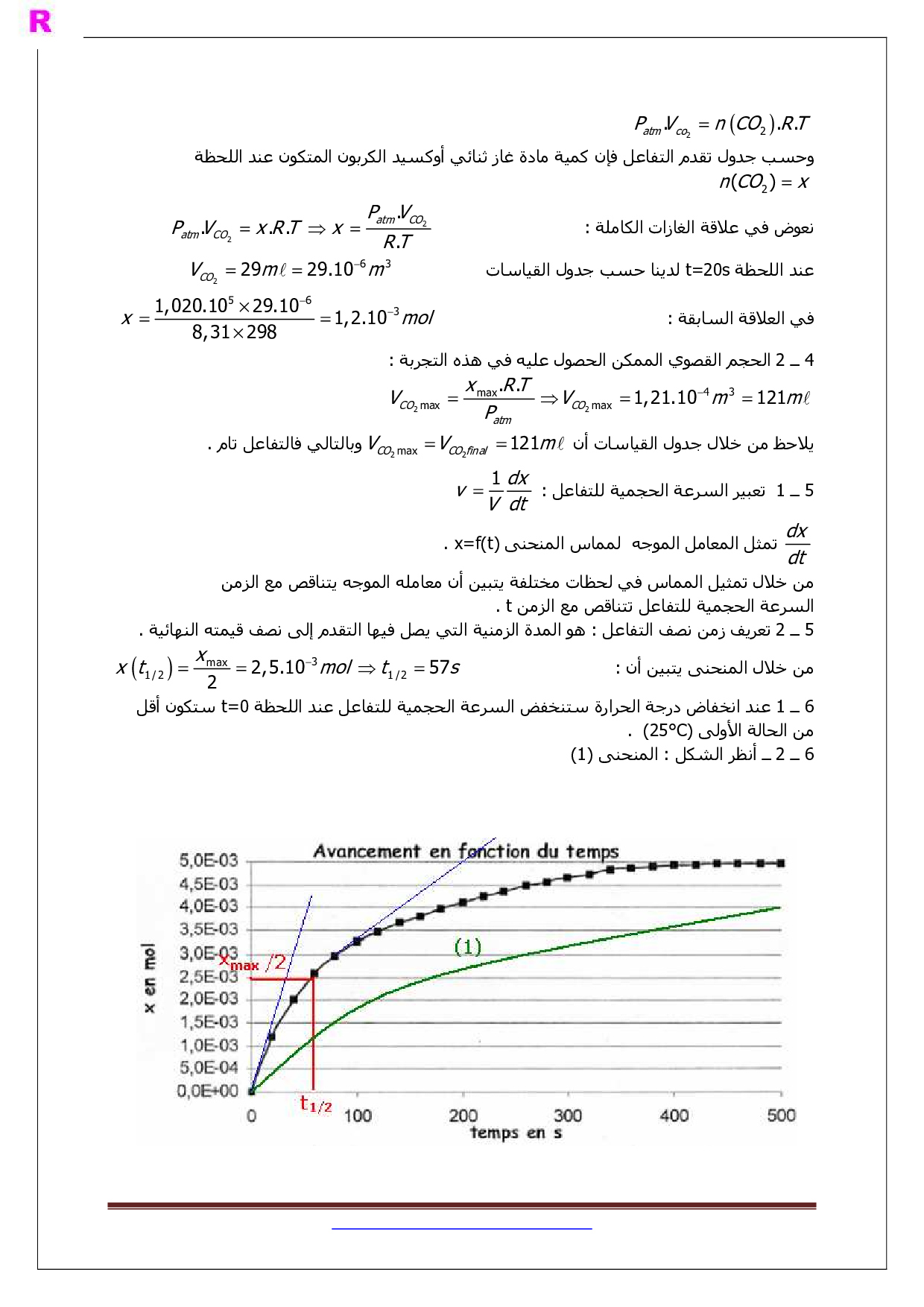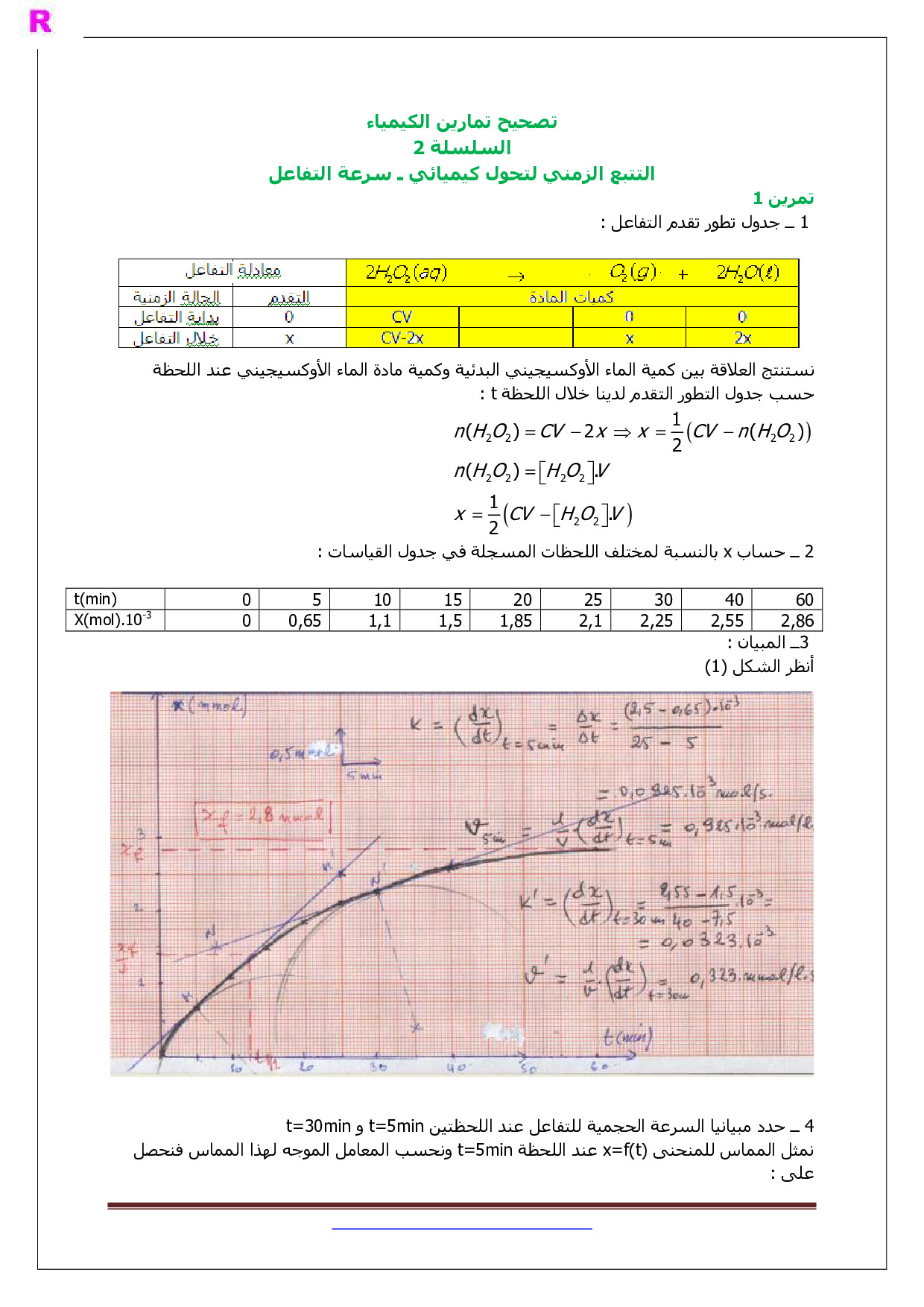 التتبع الزمني لتحول كيميائي - سرعة التفاعل - تصحيح سلسلة التمارين 1