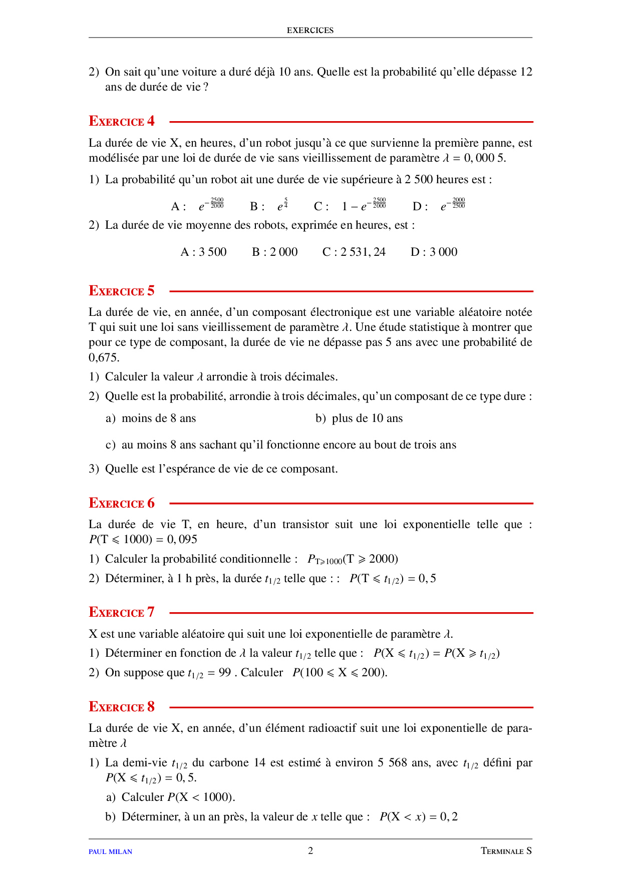 Lois à densité - Loi normale - Exercices non corrigés