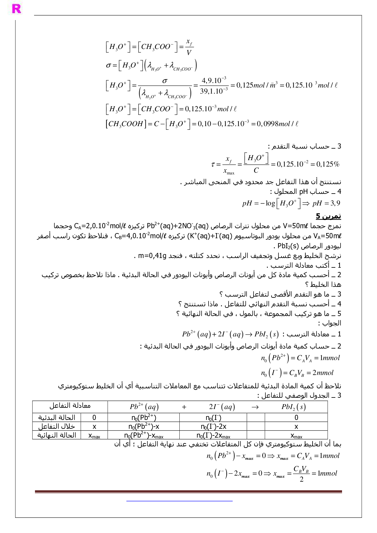 التحولات الكيميائية التي تحدث في منحيين - تصحيح سلسلة التمارين 1