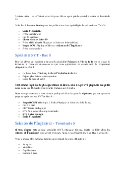 Choix de la spécialité - Bac S
