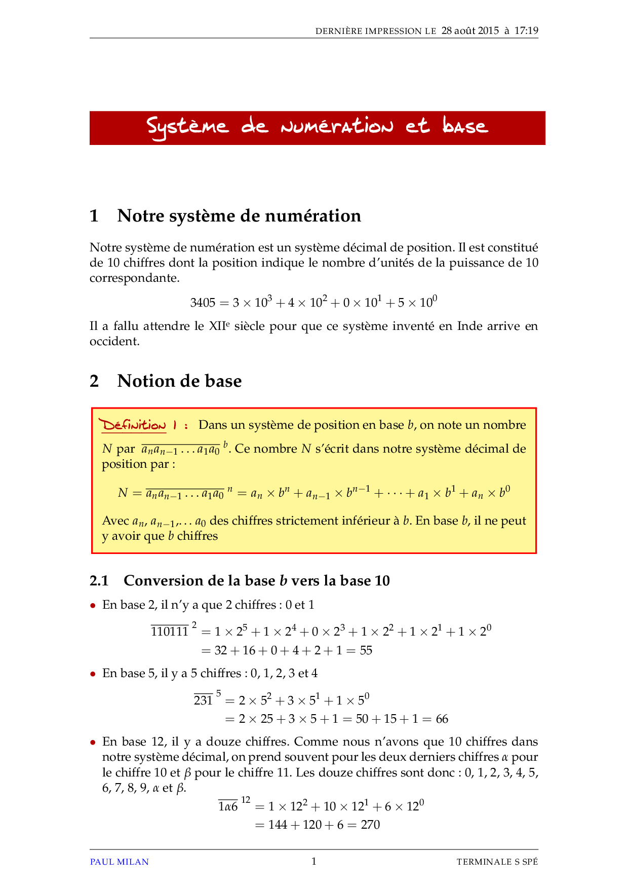 Système de numération et base - Cours