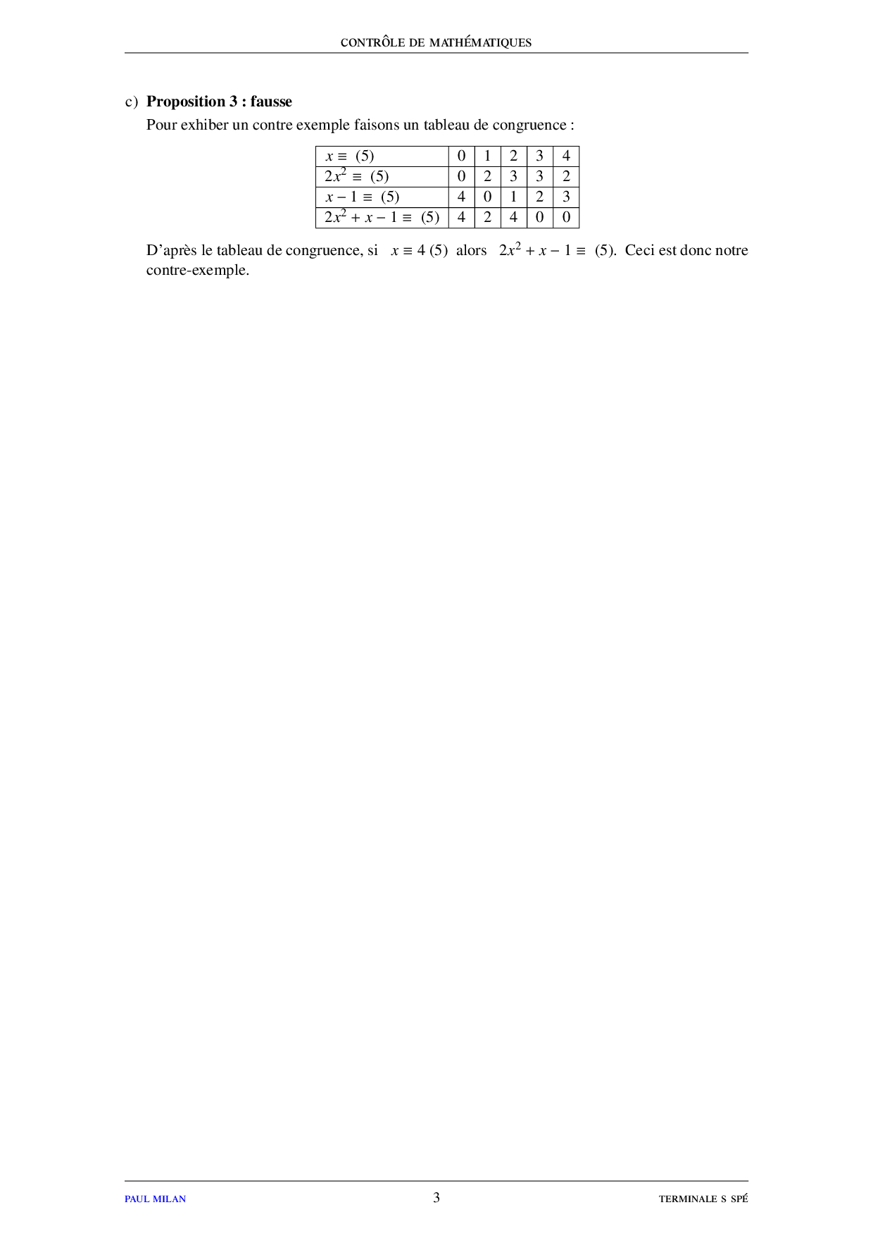 PGCD et PPCM - Théorème de Bézout et théorème de Gauss - Corrigé contrôle 1