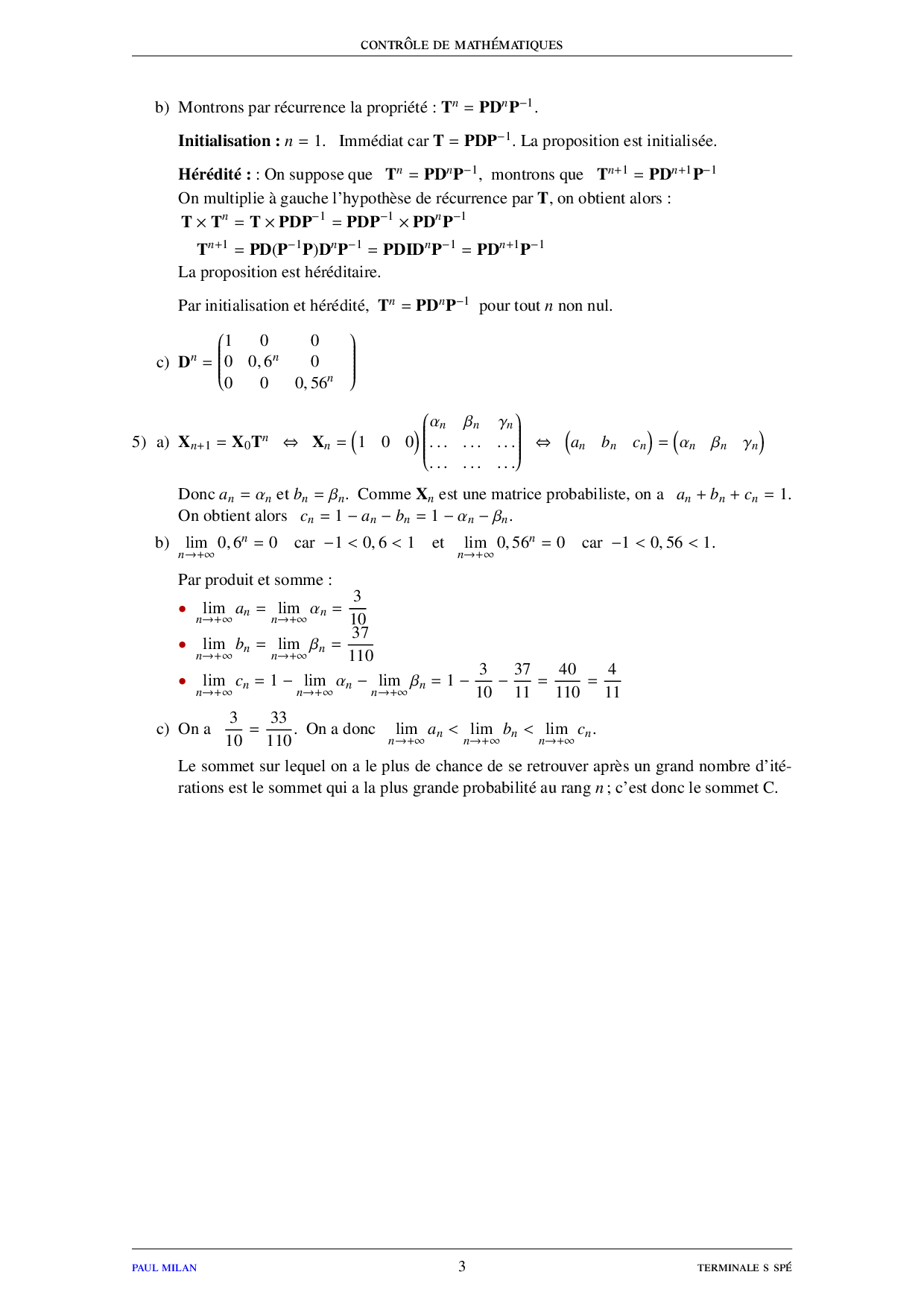 Matrices et suites - Corrigé contrôle 2