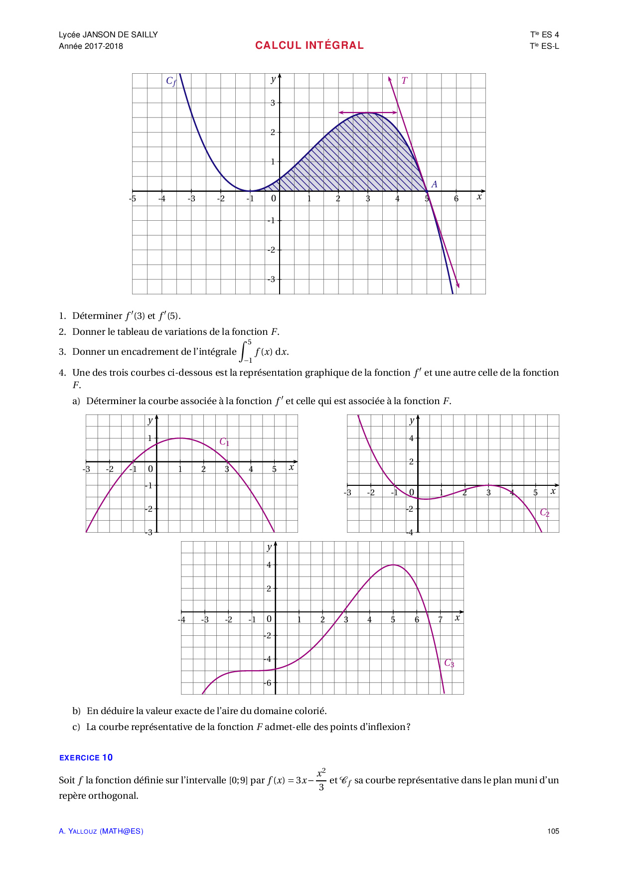 Calcul intégral - Exercices non corrigés