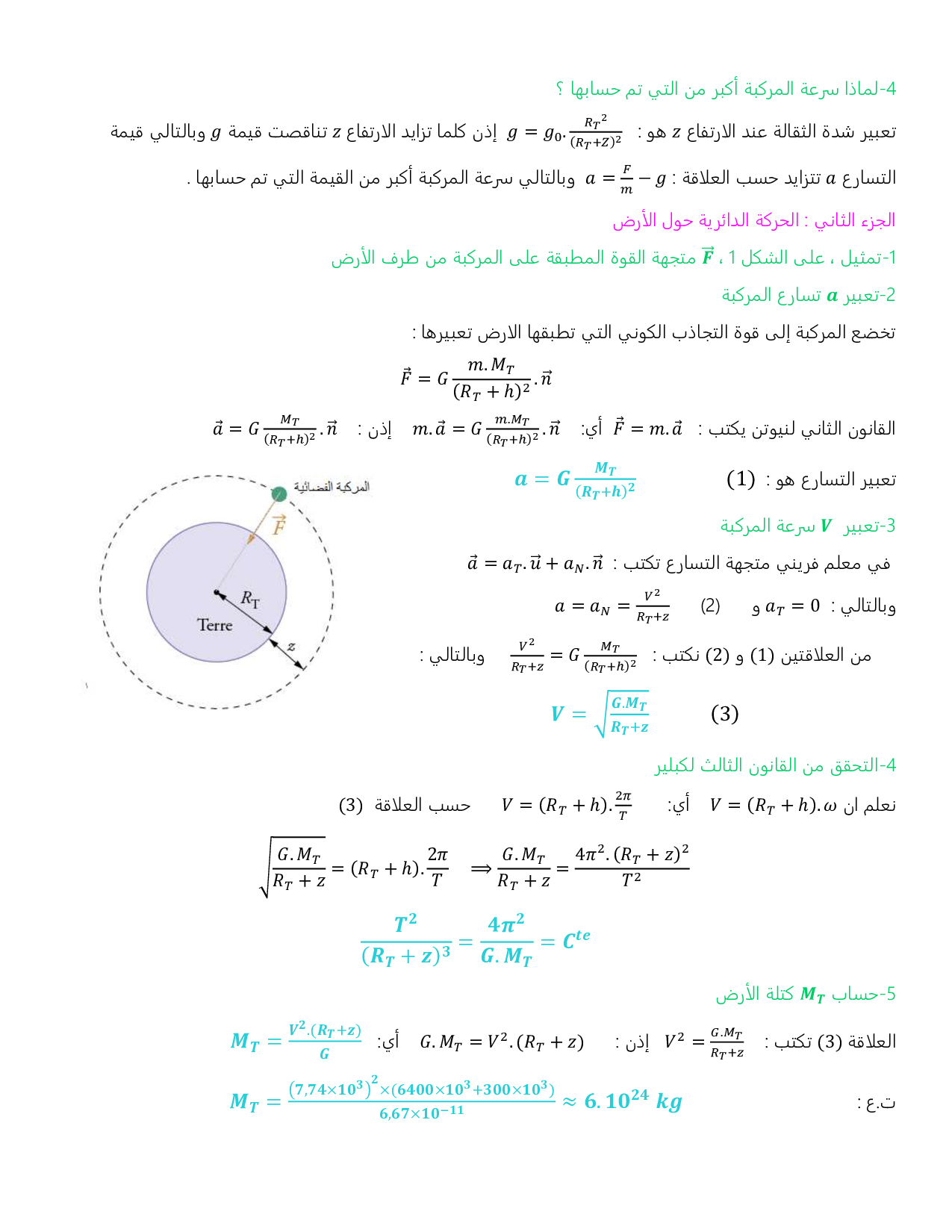 الأقمار الصناعية والكواكب - تمارين محلولة 2