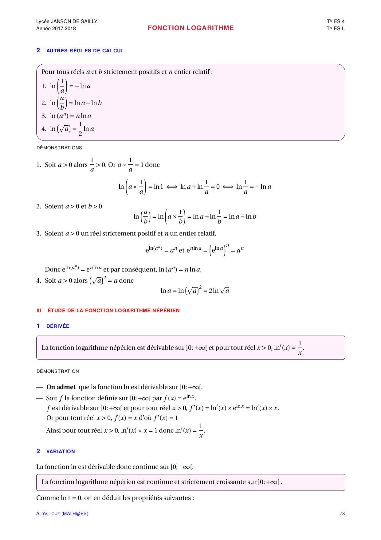 Fonction logarithme - Cours