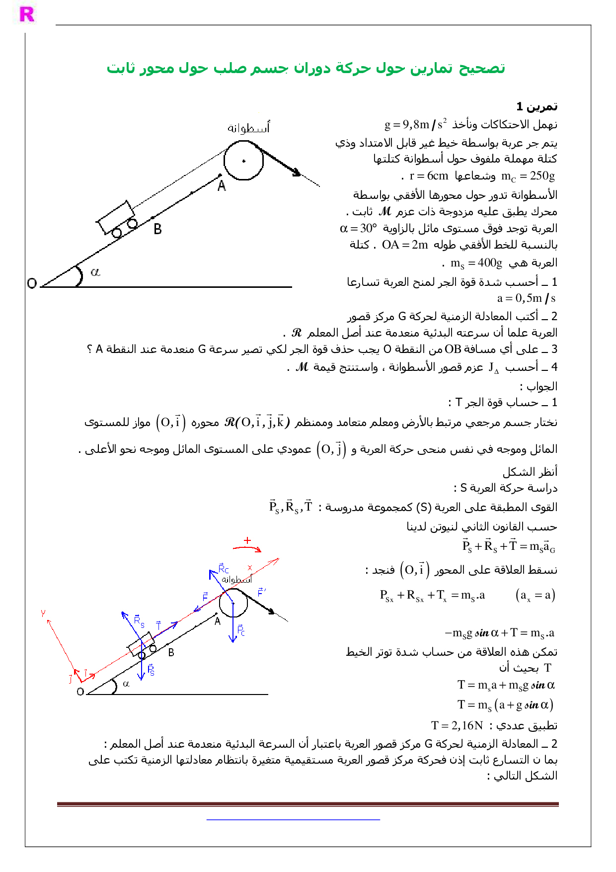 حركة دوران جسم صلب حول محور ثابت - تصحيح سلسلة التمارين 1
