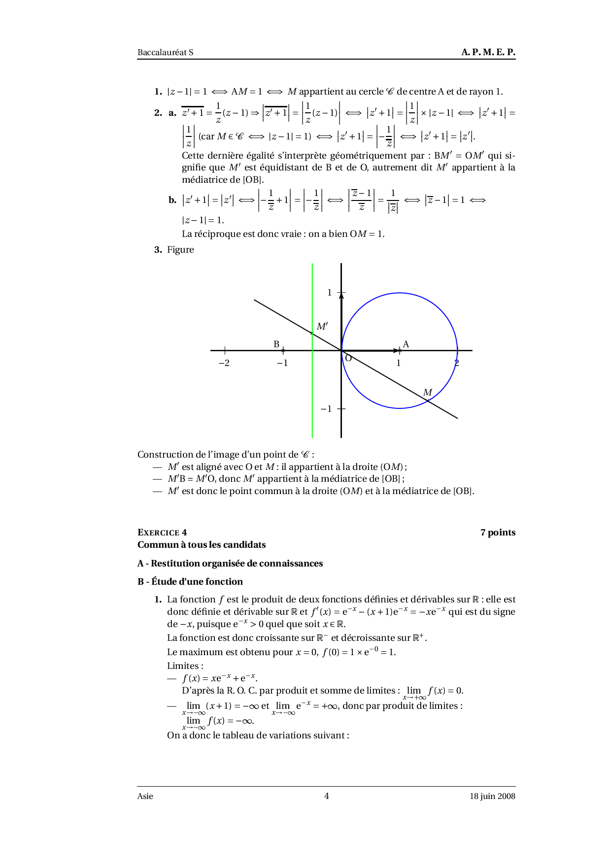 Annale Maths Bac S Asie juin 2008 - Corrigé