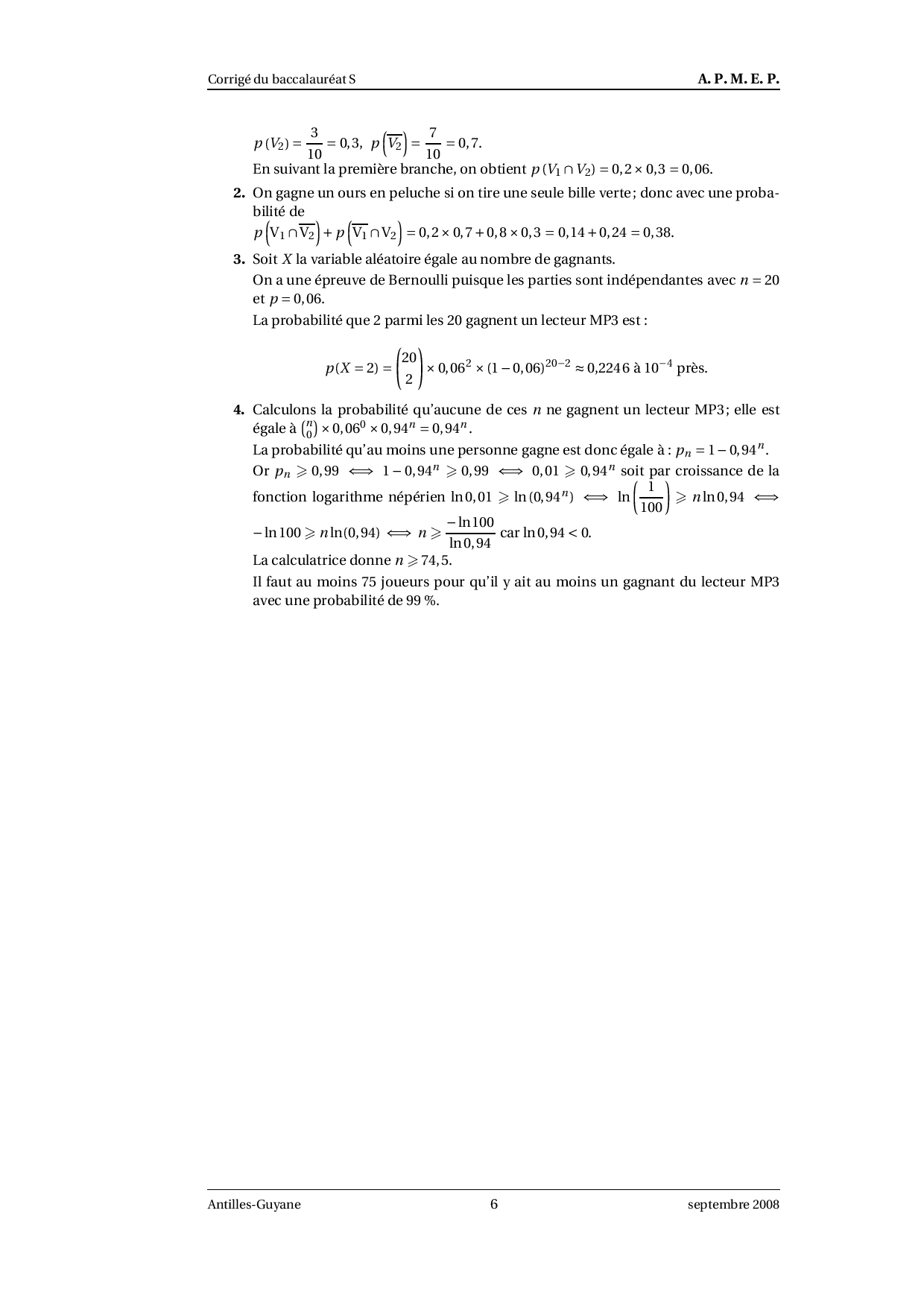 Annale Maths Bac S Antilles-Guyane (spécialité) septembre 2008 - Corrigé