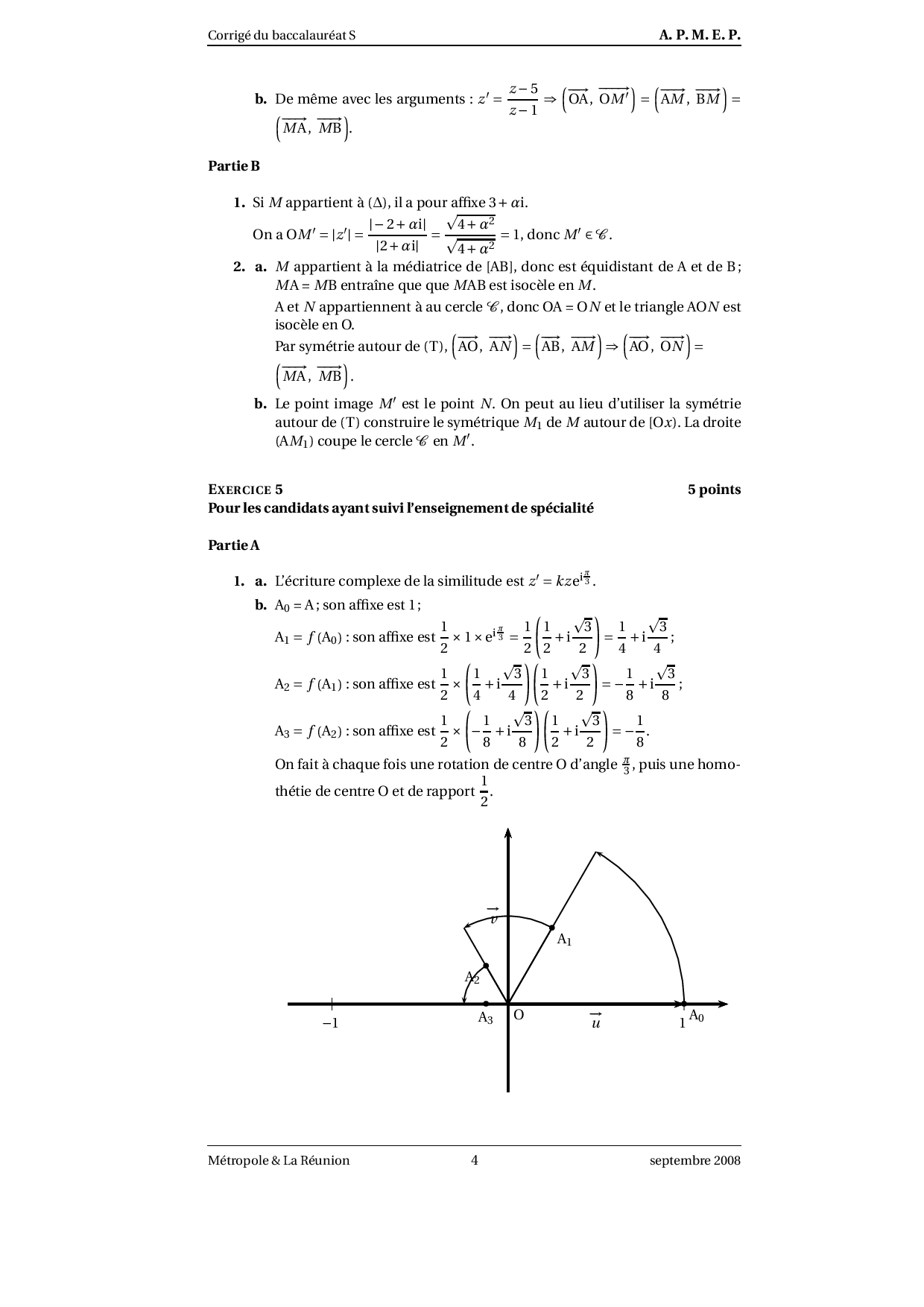 Annale Maths Bac S Métropole La Réunion septembre 2008 - Corrigé