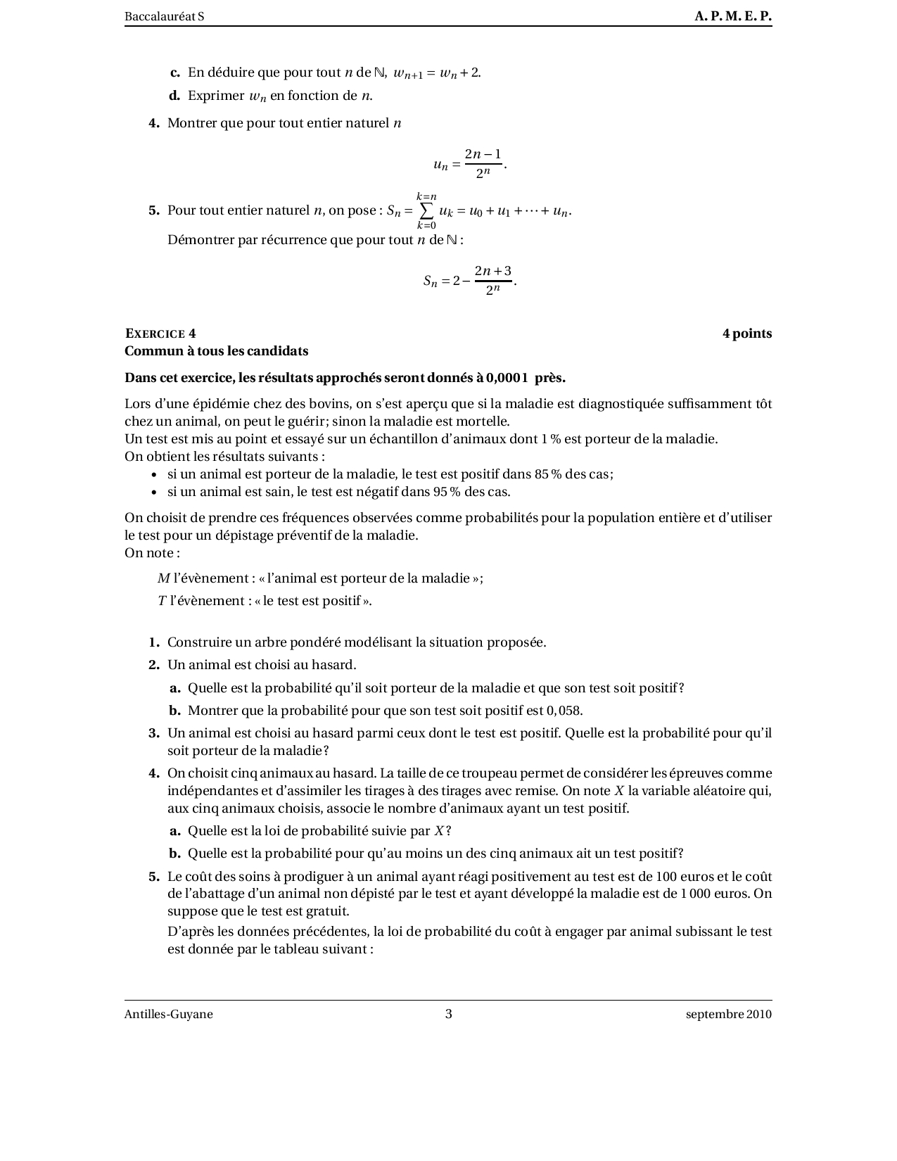 Annale Maths Bac S Antilles-Guyane septembre 2010 - Corrigé