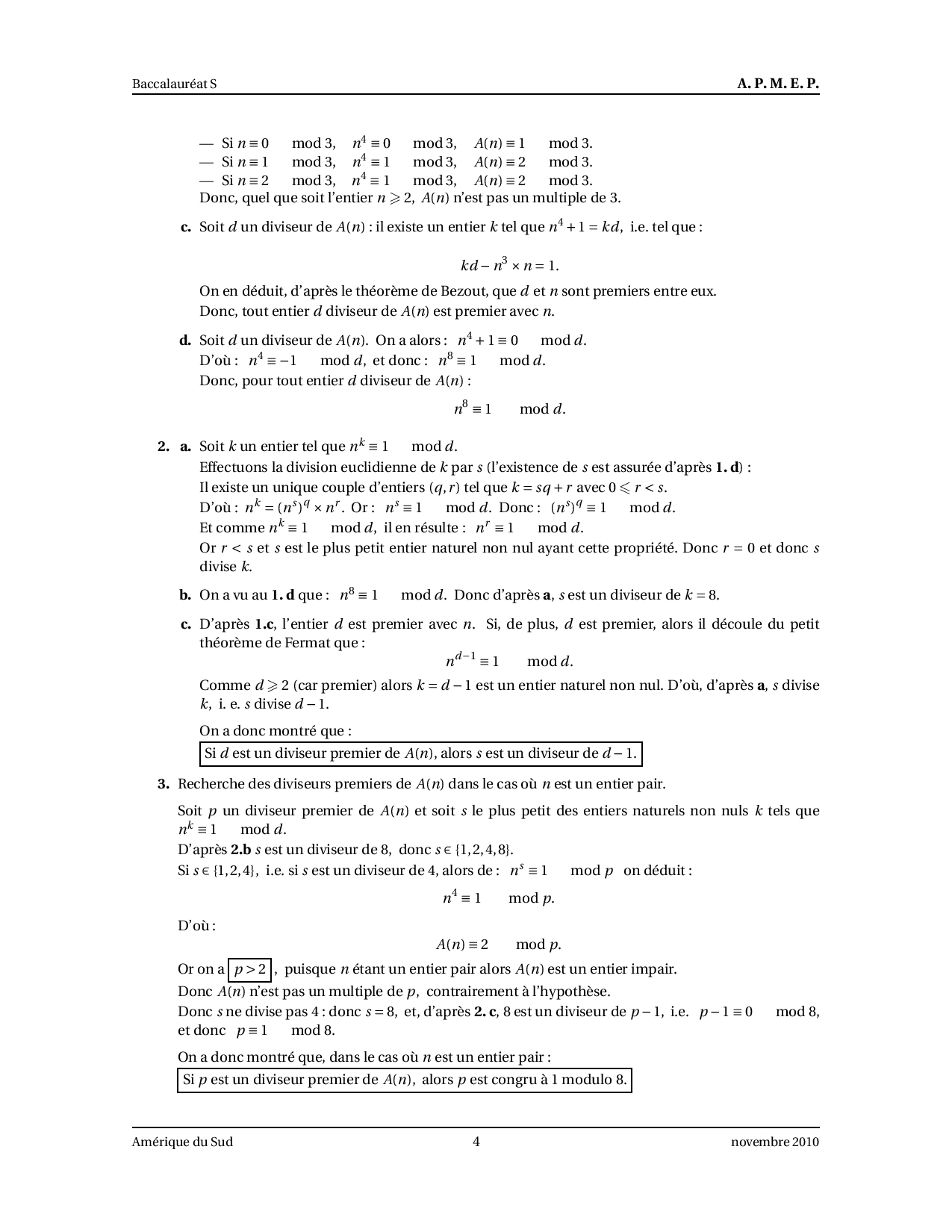 Annale Maths Bac S Amérique du Sud novembre 2010 - Corrigé