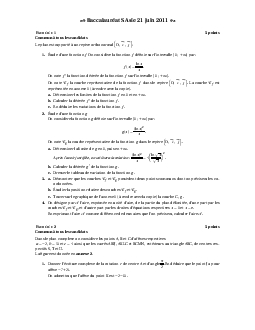 Annale Maths Bac S Asie juin 2011 - Sujet