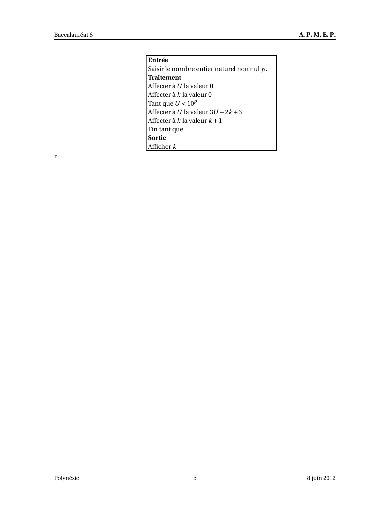 Annale Maths Bac S Polynésie juin 2012 - Corrigé