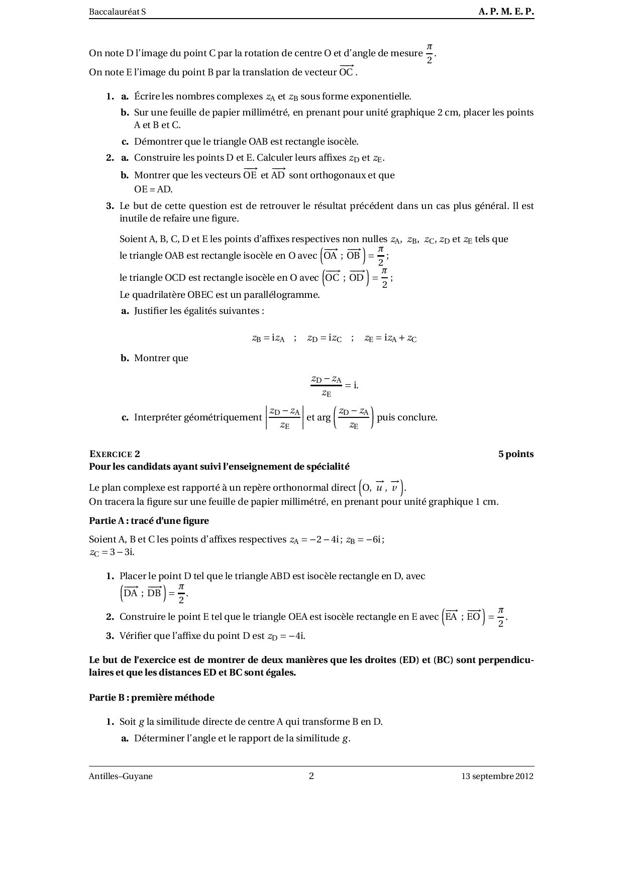 Annale Maths Bac S Antilles-Guyane septembre 2012 - Sujet