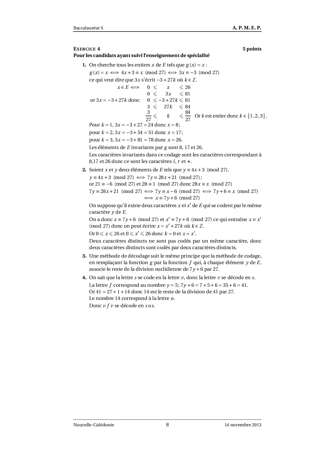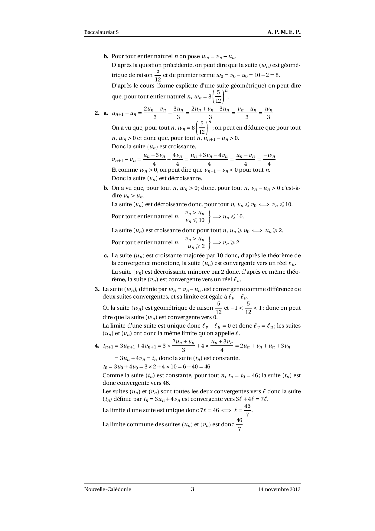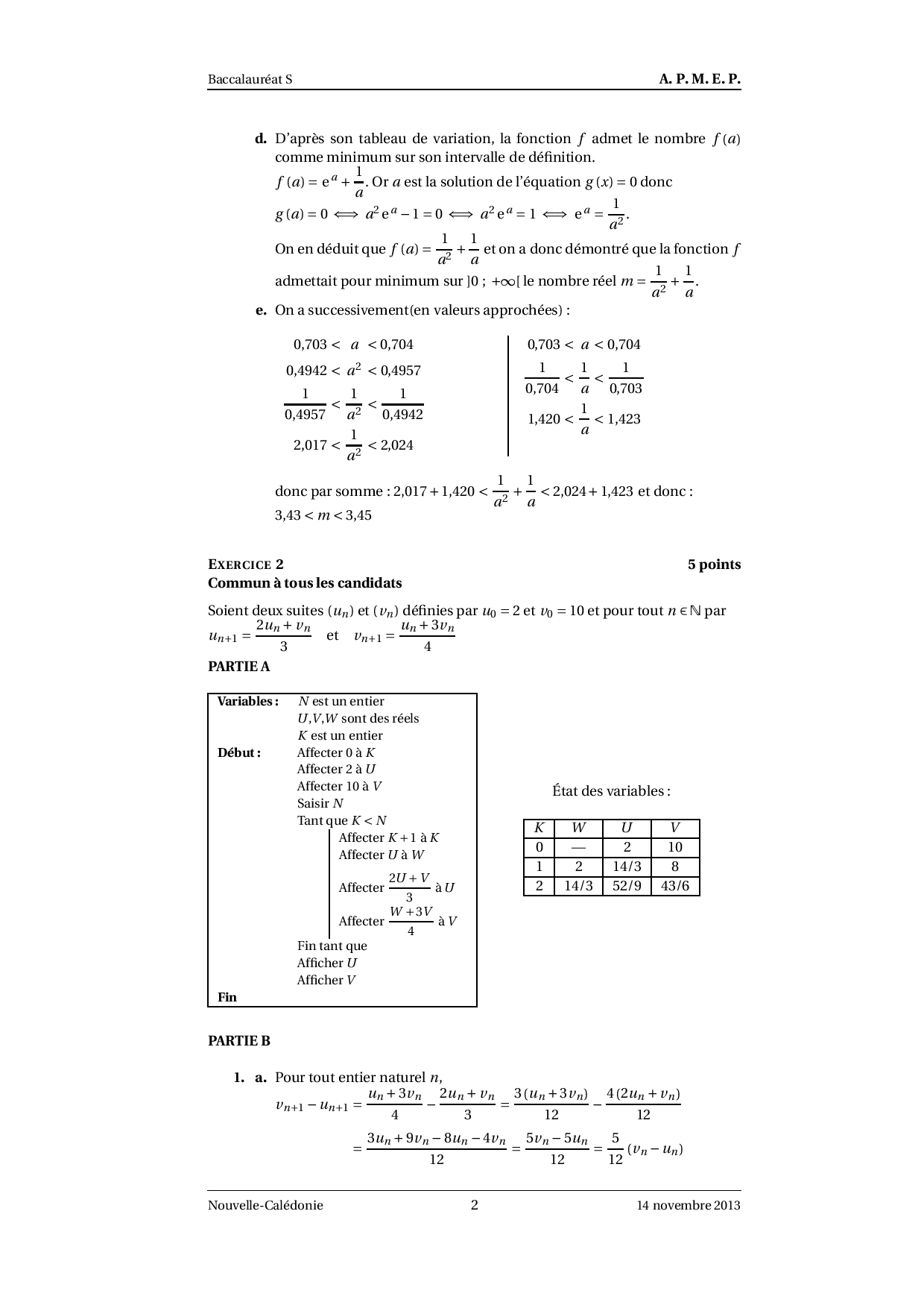 Annale Maths Bac S Nouvelle-Calédonie novembre 2013 - Corrigé