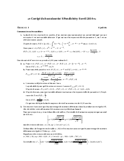 Annale Maths Bac S Pondichéry avril 2014 - Corrigé