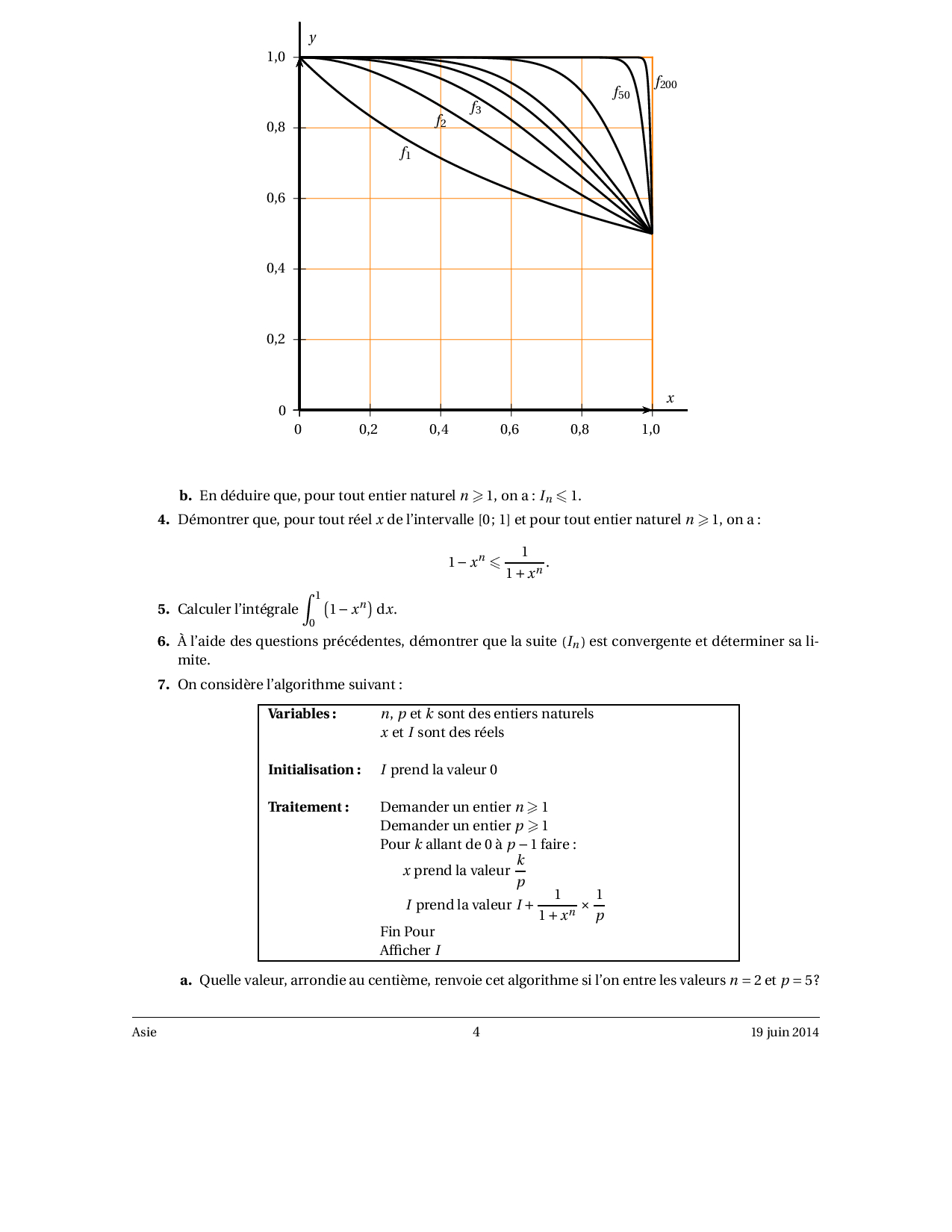 Annale Maths Bac S Asie juin 2014 - Sujet
