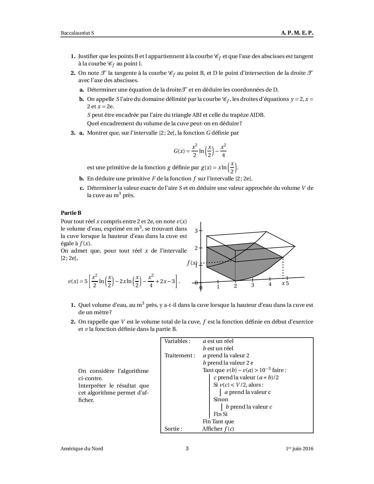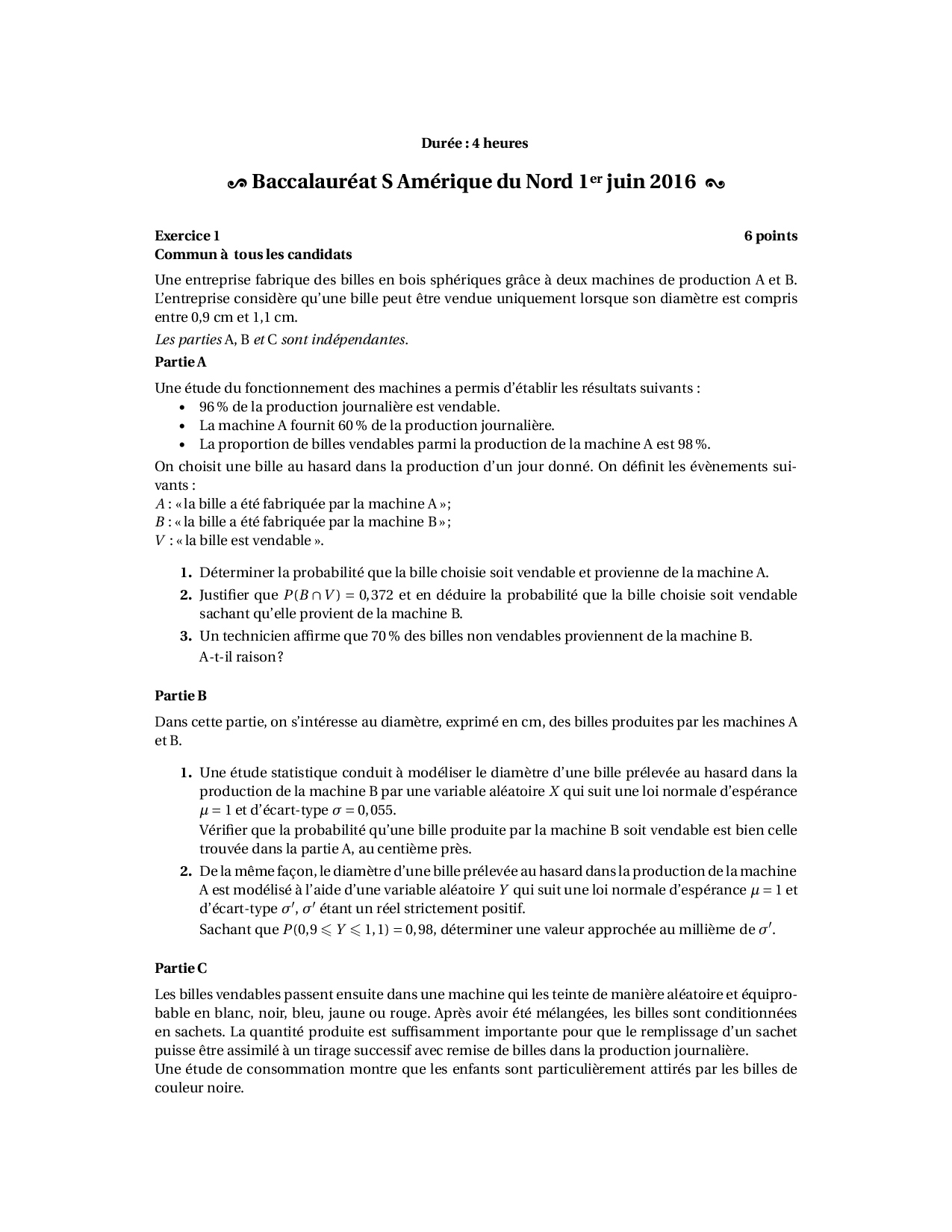 Annale Maths Bac S Amérique du nord juin 2016 - Sujet