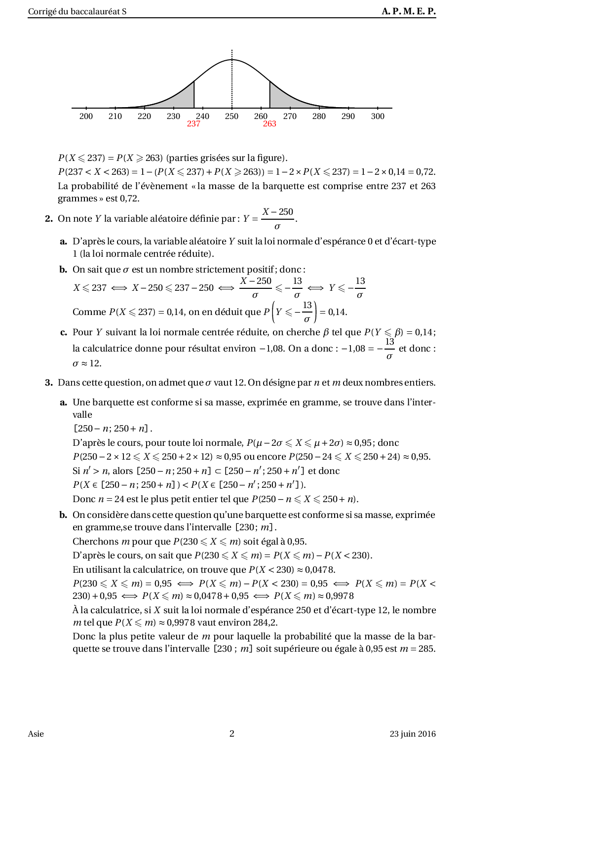 Annale Maths Bac S Asie juin 2016 - Corrigé