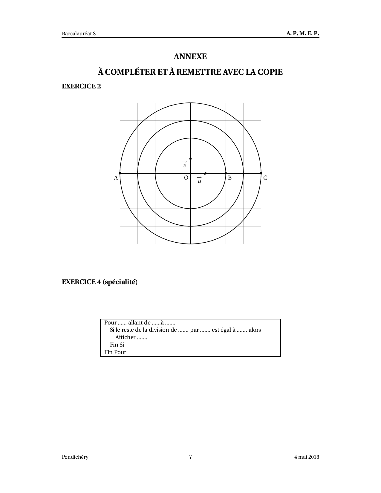 Annale Maths Bac S Pondichéry mai 2018 - Sujet